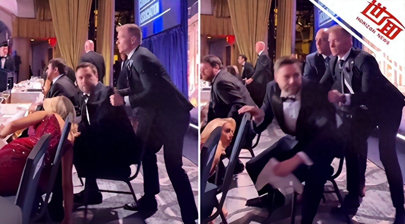 几乎是同一时间,一名贴身特勤人员直接上前拽住万斯的衣服,将他从座位上强行拖起,另外两名特勤人员立刻形成掩护阵型,一前一后将万斯围在中间,以最快速度沿着通道带离会场,整个过程不到10秒。