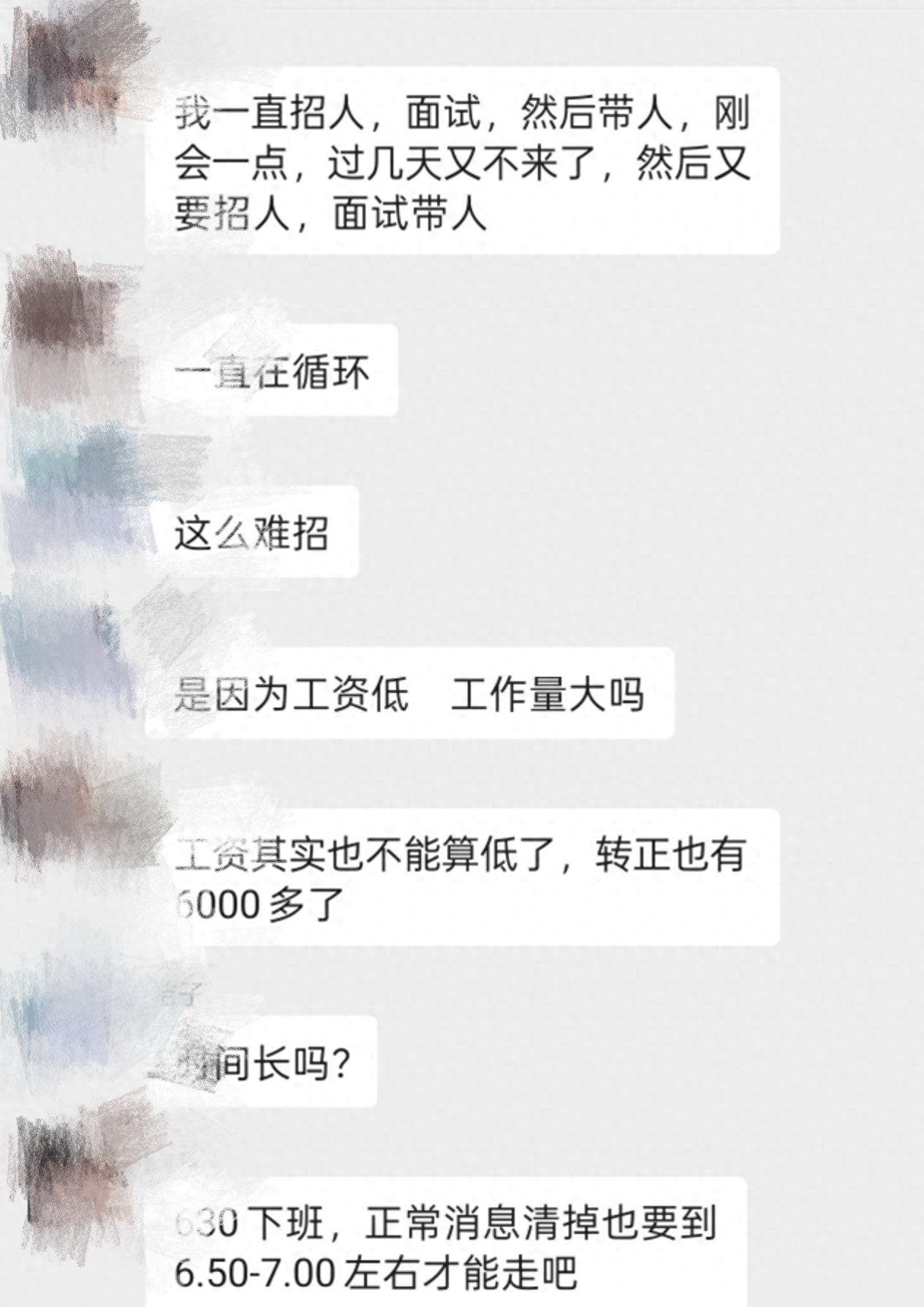 最近刷到一段聊天记录,瞬间戳中了无数打工人和老板的痛点。 聊天里,一位HR吐槽:“我一直招人,面试,然后带人,刚会一点,过几天又不来了,然后又要招人,面试带人,一直在循环。” 另一位网友追问:“这么难招,是因为工资低、工作量大吗?” HR回应:“工资其实也不能算低了,转正也有6000多了。6:30下班,正常消息清掉也要到6:50-7:00左右才能走吧。” 短短几句话,道尽了当下职场最拧巴的现状:老板喊着招人难、留人难,打工人吐槽求职难、生存难,明明是双向需要,却偏偏成了双向内耗。