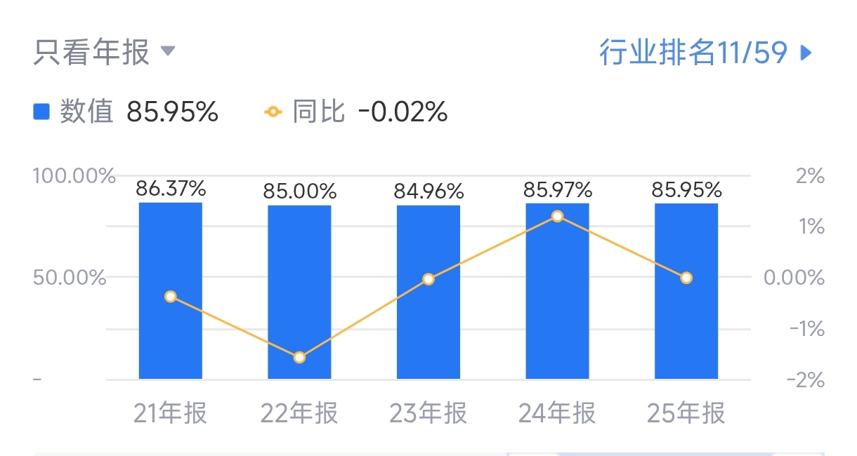 资产负债率85.95%,与上年同期基本持平。