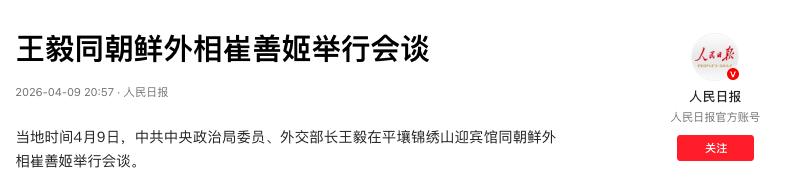 4月9日,我国外长王毅乘坐专机抵达朝鲜,本次出访是受到朝鲜外务省邀请,备受国际关注。