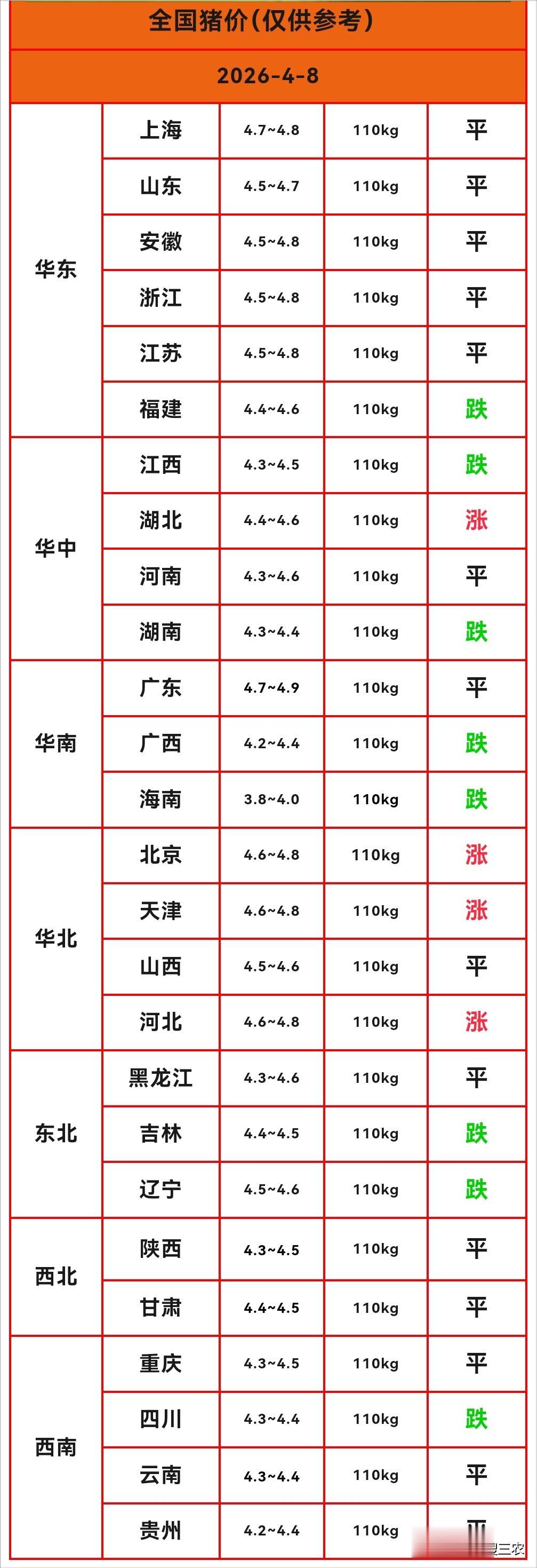 2026年4月8日全国猪价正式出炉,市场彻底进入 “冰火两重天” 的分化格局!