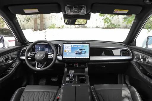内饰部分,GS8配12.3英寸全液晶仪表和14.6英寸中控屏,座椅材质是真皮+仿皮,还有15W手机无线充电。