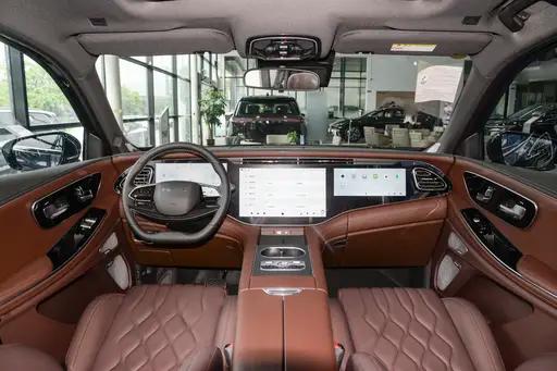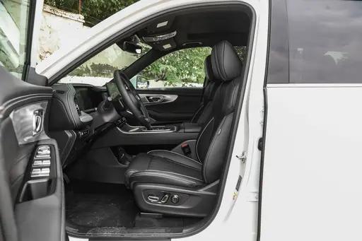揽月的科技感更强,给到了12.3英寸全液晶仪表、15.6英寸中控屏和12.3英寸副驾屏,座椅材质是真皮,并且有50W手机无线充电,换挡机构也是电子式怀挡。