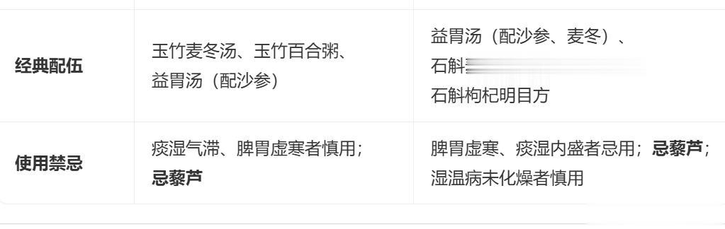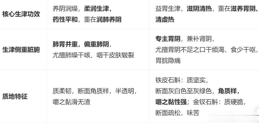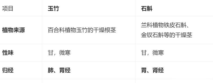 ✅ 关键辨识口诀: 玉竹润肺养肤柔,久咳肤燥最相投; 石斛专滋胃阴强,口干食少是良方。