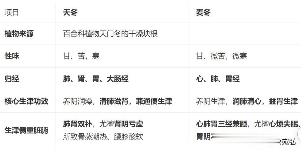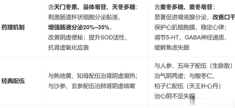 ✅ 关键辨识口诀: 天冬滋肾通大便,骨蒸潮热是关键; 麦冬清心润肠专,心烦口燥最宜选。
