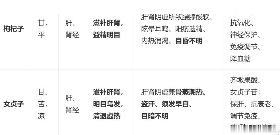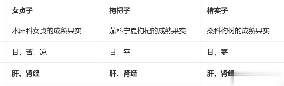 一、补阴药明目作用:女贞子、枸杞子、楮实子核心区别