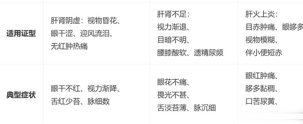 适用:单纯肝肾阴虚型视物模糊、眼干畏光、迎风流泪,无红肿热痛者。