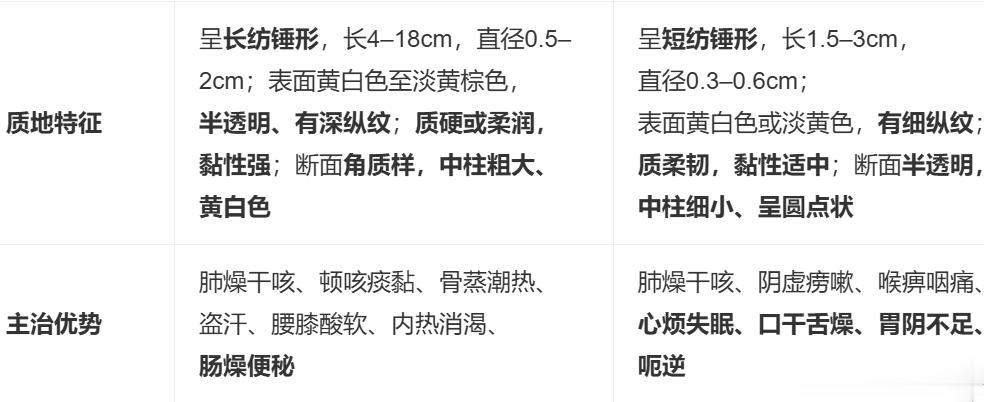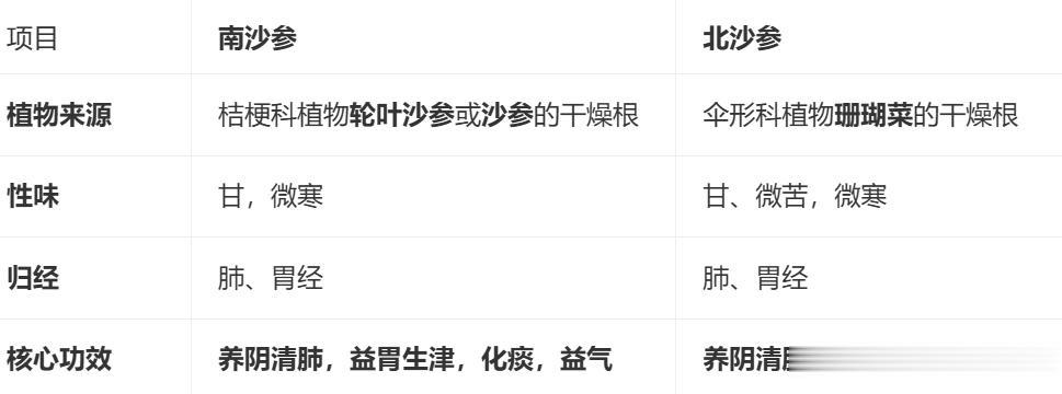 不可互换使用:北沙参无化痰之力,南沙参生津不及北沙参,误用易致疗效降低。