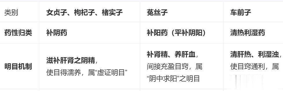 明目作用与菟丝子、车前子的本质区别
