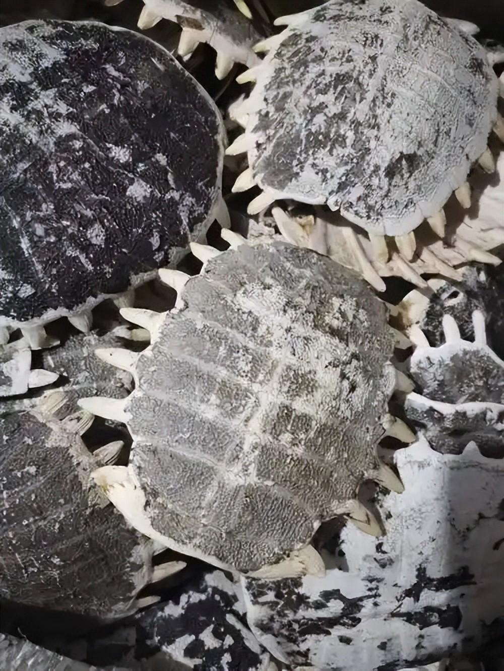 鳖甲八凹网纹深,无腹隆背薄而韧。鳖甲的8条横凹纹、网状皱纹与背面隆起特征