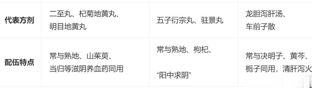 二至丸(女贞子 + 墨旱莲):经典配伍,用于肝肾阴虚兼有潮热盗汗、须发早白、出血倾向者。
