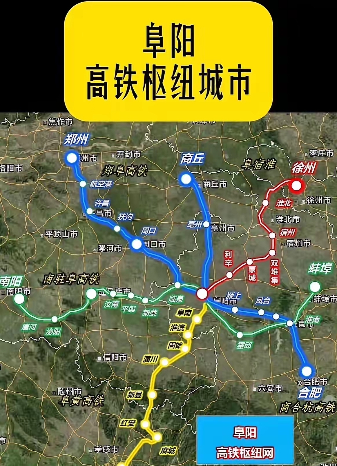 阜阳正崛起为安徽高铁新枢纽,两条高铁形成十字交汇,年底再添阜淮城际。未来米字形高铁网建成后,2~3小时直达北京、武汉等大城市,350公里时速重塑区域经济版图。