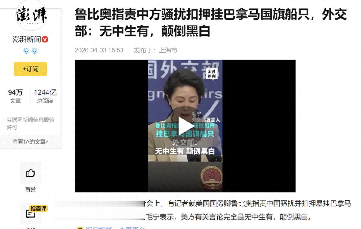 鲁比奥得知以后,更是直接在4月2日发表声明,说什么我们“骚扰”并“扣押”所有挂着巴方国旗的船。然后一口一个:中方破坏了世界和平,破坏了全球供应链稳定之类的。反正不知不觉,我们直接背上了无数的黑锅。