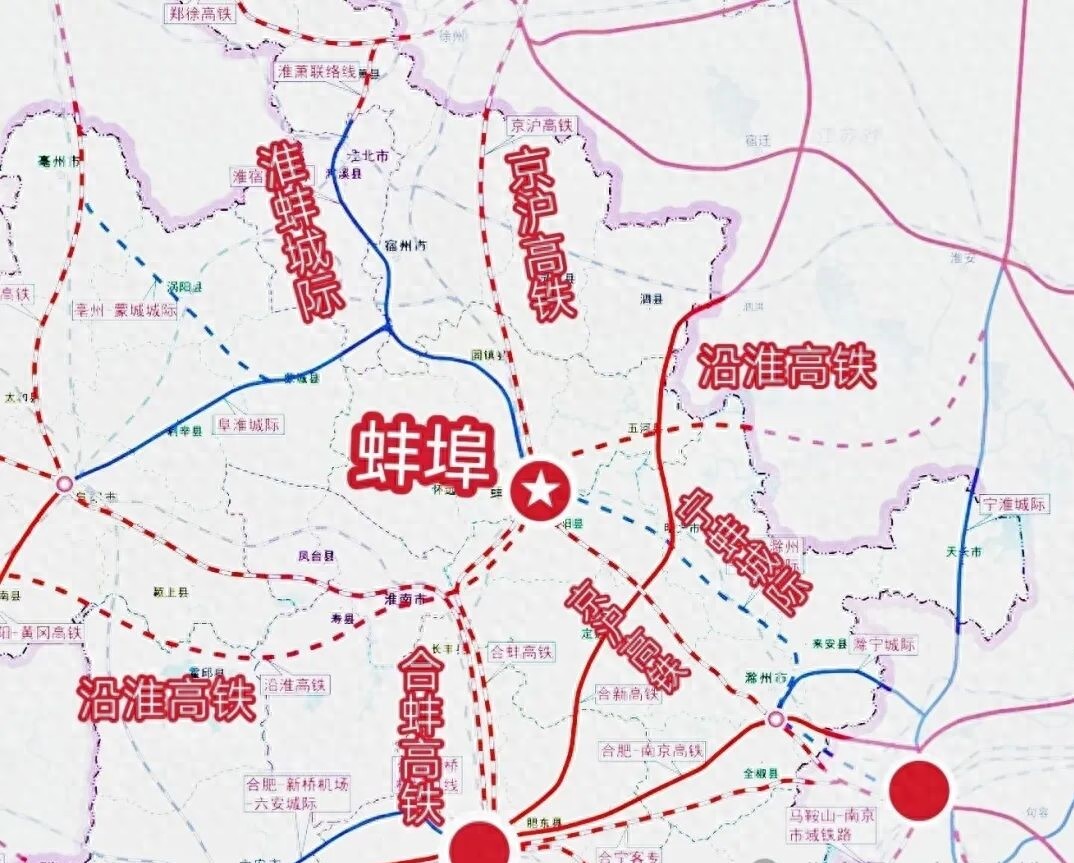 沿淮高铁:力争纳入“十五五”规划,东西走向,连接河南、安徽、江苏,推动淮河经济带发展,蚌埠将成为重要节点 。
