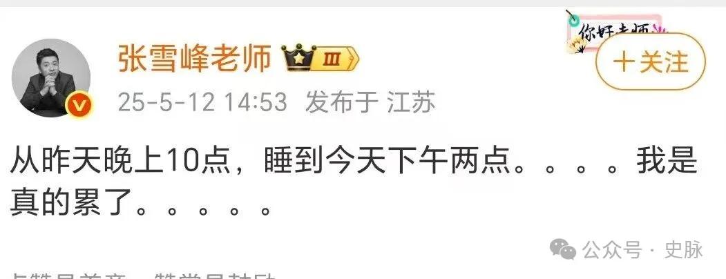 我那时间只是熬了不到一个星期的夜,而且那时候我也年轻才20多岁,竟然就能累成那样,我感觉张雪峰老师的疲惫程度是我的十倍,大概就是他经历的痛苦。