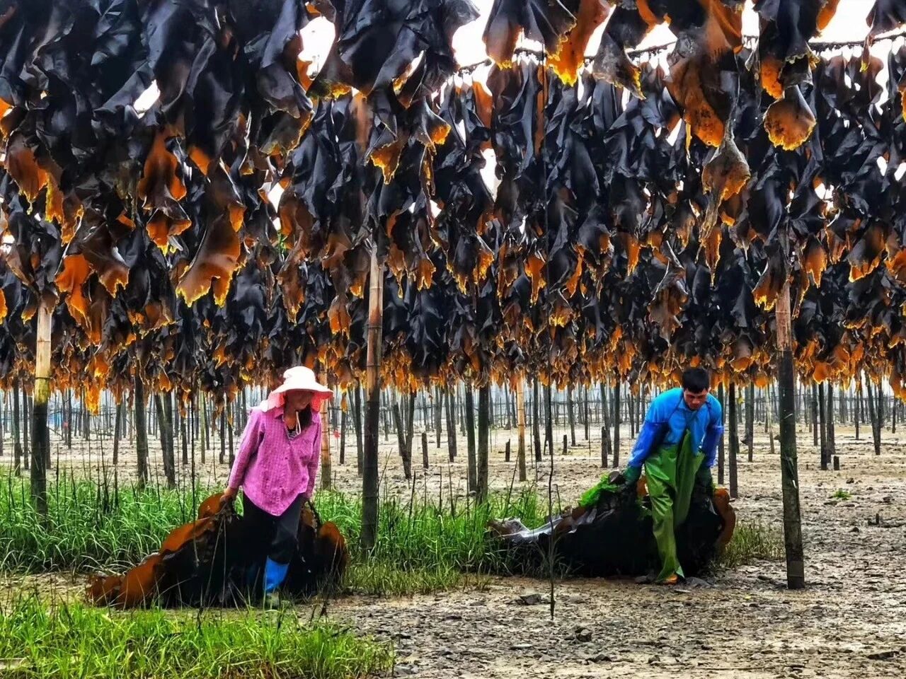 白鹭村:海带丰收的季节每年4-6月,是白鹭村最热闹的时候。海带丰收了,墨绿的海带像绸缎一样铺满近海,渔民们忙着收割、晾晒,场面特别壮观。