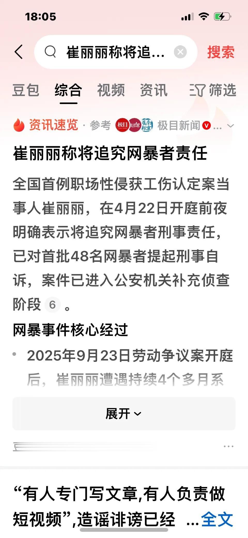 目前统计显示参与网暴崔丽丽的实名认证律师约11人,百万粉丝级博主近10人,心理领域博主数人。维权司法进展情况为,2026年2月已固定首批48人信息,提起刑事自诉,案由为诽谤罪和侮辱罪。平台方已提供侵权人信息,法院将证据及信息移交公安侦查。对此笔者想不通的是,嫌疑人如果是文化水平不高的工人农民也可以理解,只是其中不乏专业的人士,简直不可理喻,知法犯法,罪加一等!
