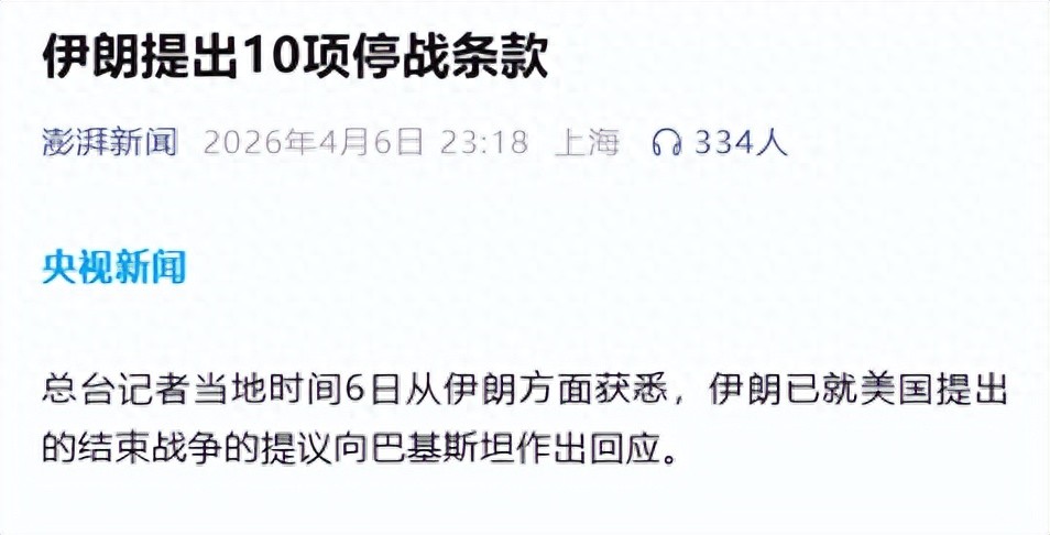 45天停火协议,可能性如何6日从伊朗方面获悉,伊朗已就美国提出的结束战争的提议向巴基斯坦作出回应。伊朗方面的要求涵盖十项条款,核心内容包括:强调必须根据伊朗的关切实现永久结束战争;提出一系列诉求,如结束地区冲突、制定霍尔木兹海峡安全通行协议、战后重建以及解除制裁等。
