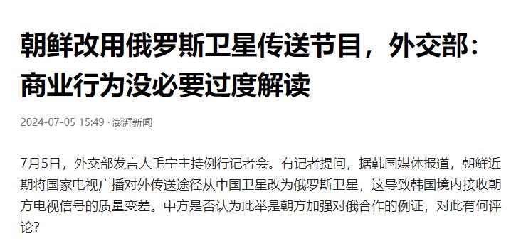 总的来说,朝鲜弃用中国卫星,使用俄罗斯卫星完全是一个商业行为。类似这样的事情,其实还有很多。也希望美西方能够放下执念,不要总是在舆论上搞鬼。