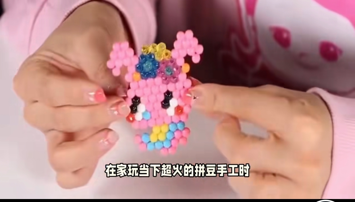 先给不晓得的朋友摆一哈,拼豆是个啥子:五颜六色小豆豆,拼出图案用小熨斗一烫就定型,做挂件、做摆件,发朋友圈点赞爆多,便宜又好耍,简直是手工界的“顶流网红”。