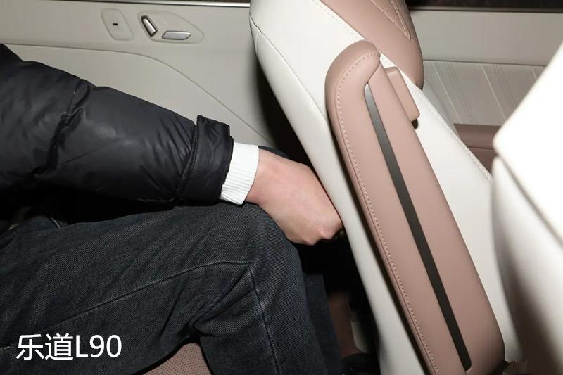 其次,乐道L90算是真正意义上的大三排,同样是1米8的男性用户,坐在第二排,腿部足足有三拳多的空间,能轻松翘起二郎腿,保持第二排座椅不动,第三排腿部也有一拳的空间,座座都是VIP的体验。而且同样配有前两排座椅加热/通风/按摩、四温区空调、车载冰箱、小桌板、17.3英寸大彩电和8英寸触摸屏,高端舒适性的配置拉满了。