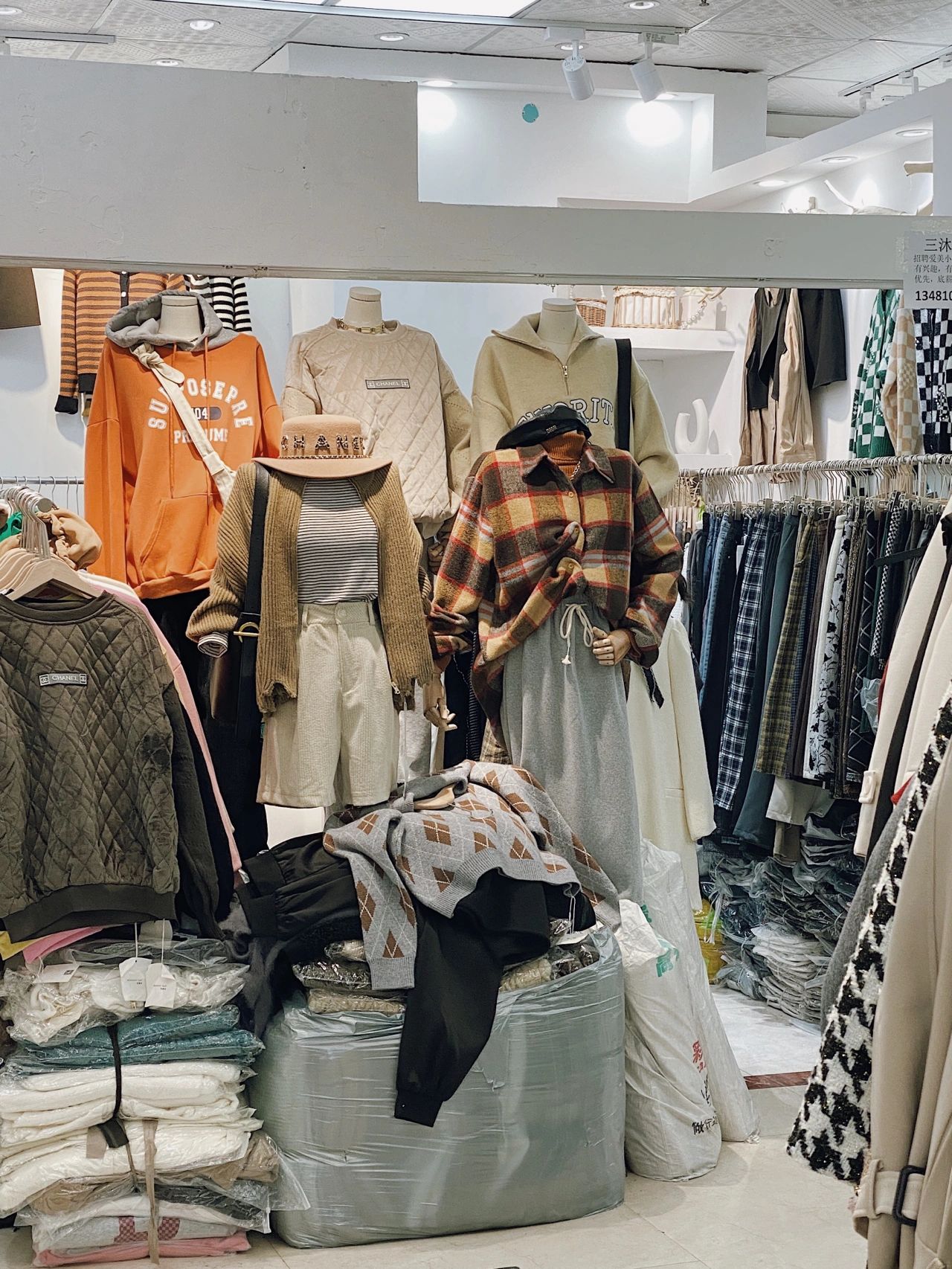 店铺比较小,但是款式比较全,而且三件套的衣服或者搭配好的衣服比较多,169直接买了套件套,很便宜