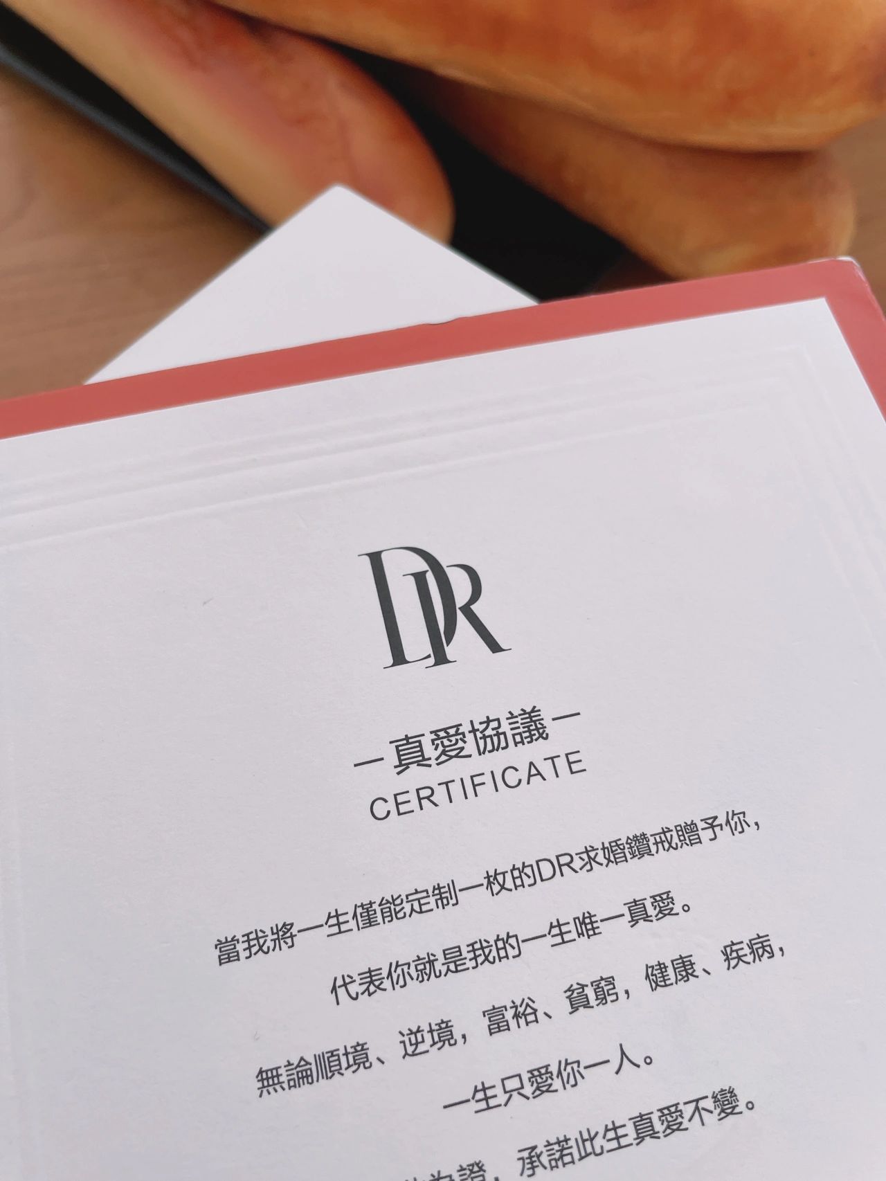 我知道钻戒中的他的一生唯一真爱的份量有多重,我会一直带着这DR钻戒和他走下去。