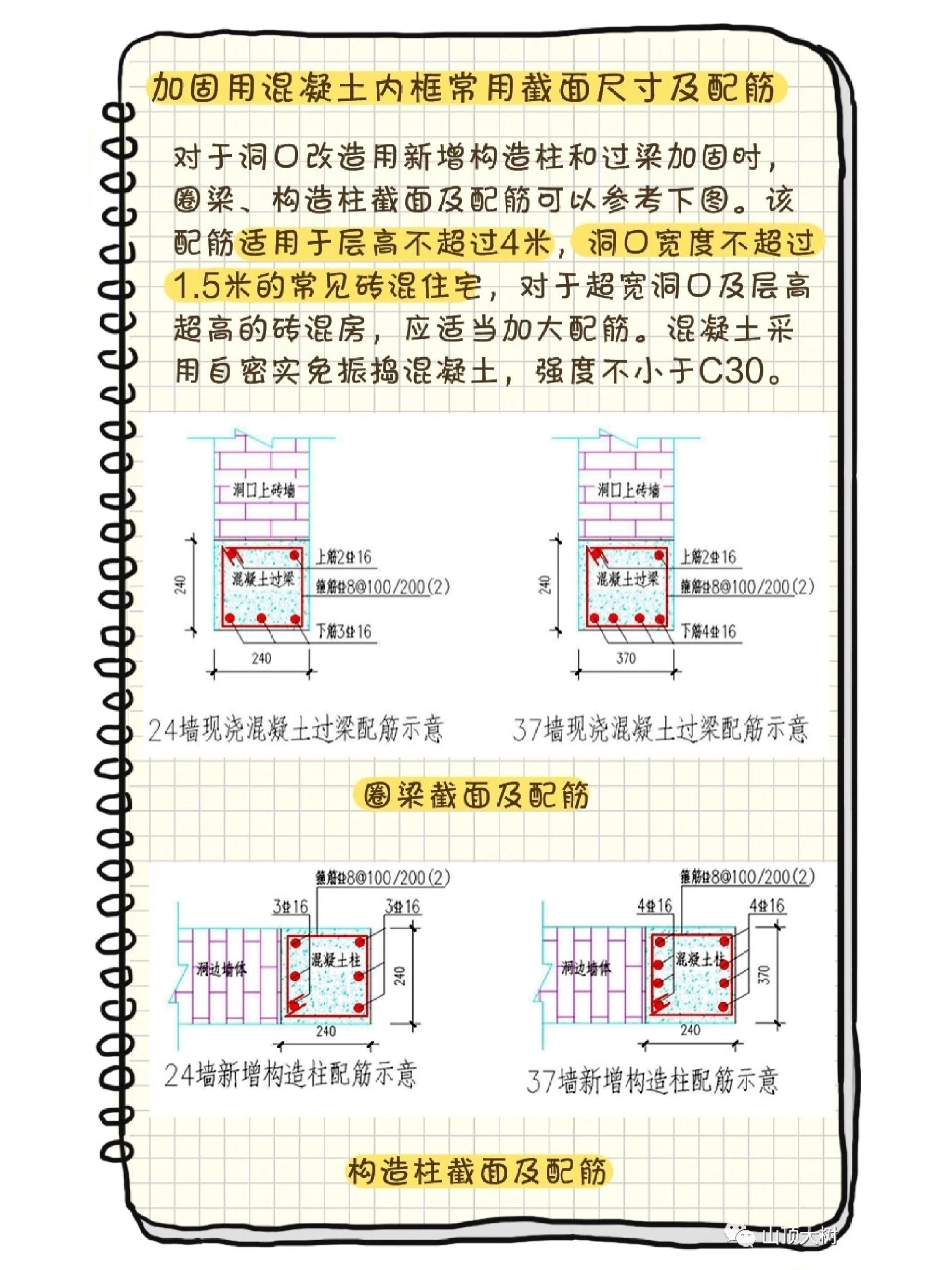 2、如果需要开门洞,建议尽量开小尺寸门洞,居中开,最小保留30cm的门垛给加固施工做节点,砖混结构在开门洞之前一定要注意卸载,然后也要做好支撑工作。如果上一层是放重物的话,一定要把楼上重物卸掉,减轻重量。一般老房子楼板结构都是预制板,那么如果预制板的受力点刚好在开门洞的位置就要先做好支撑。因此,砖混结构在开门洞常用的两种方法有增加钢结构梁和现浇大梁,不过我们在安装的时候要观察楼下的沉重墙有没有破坏过,以免加固的受力点不正确。