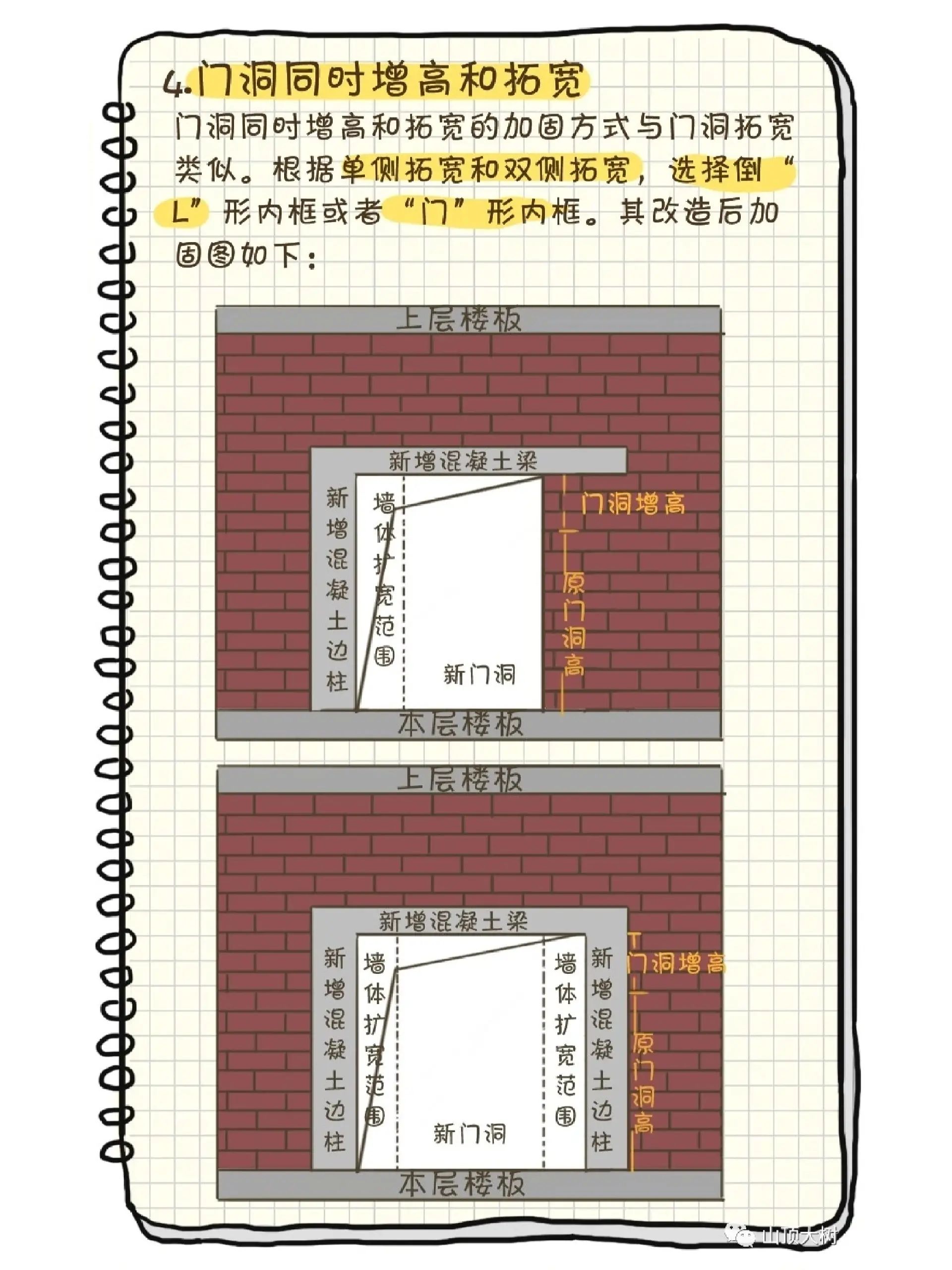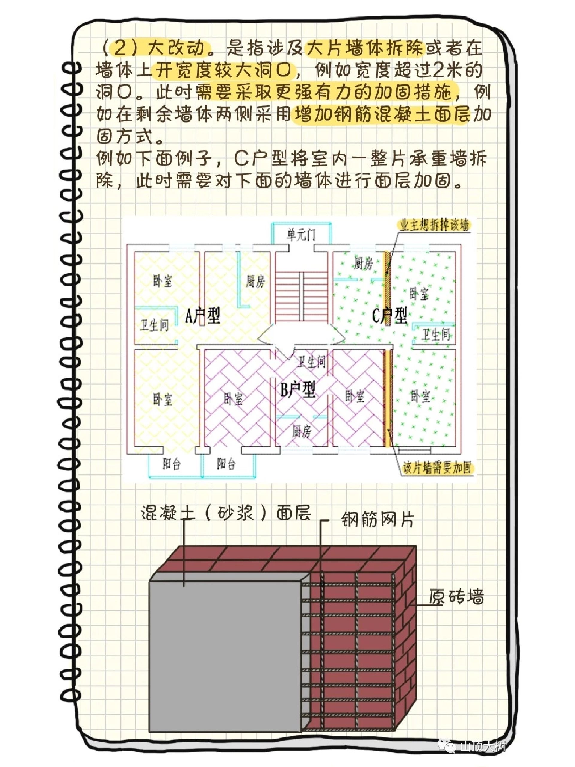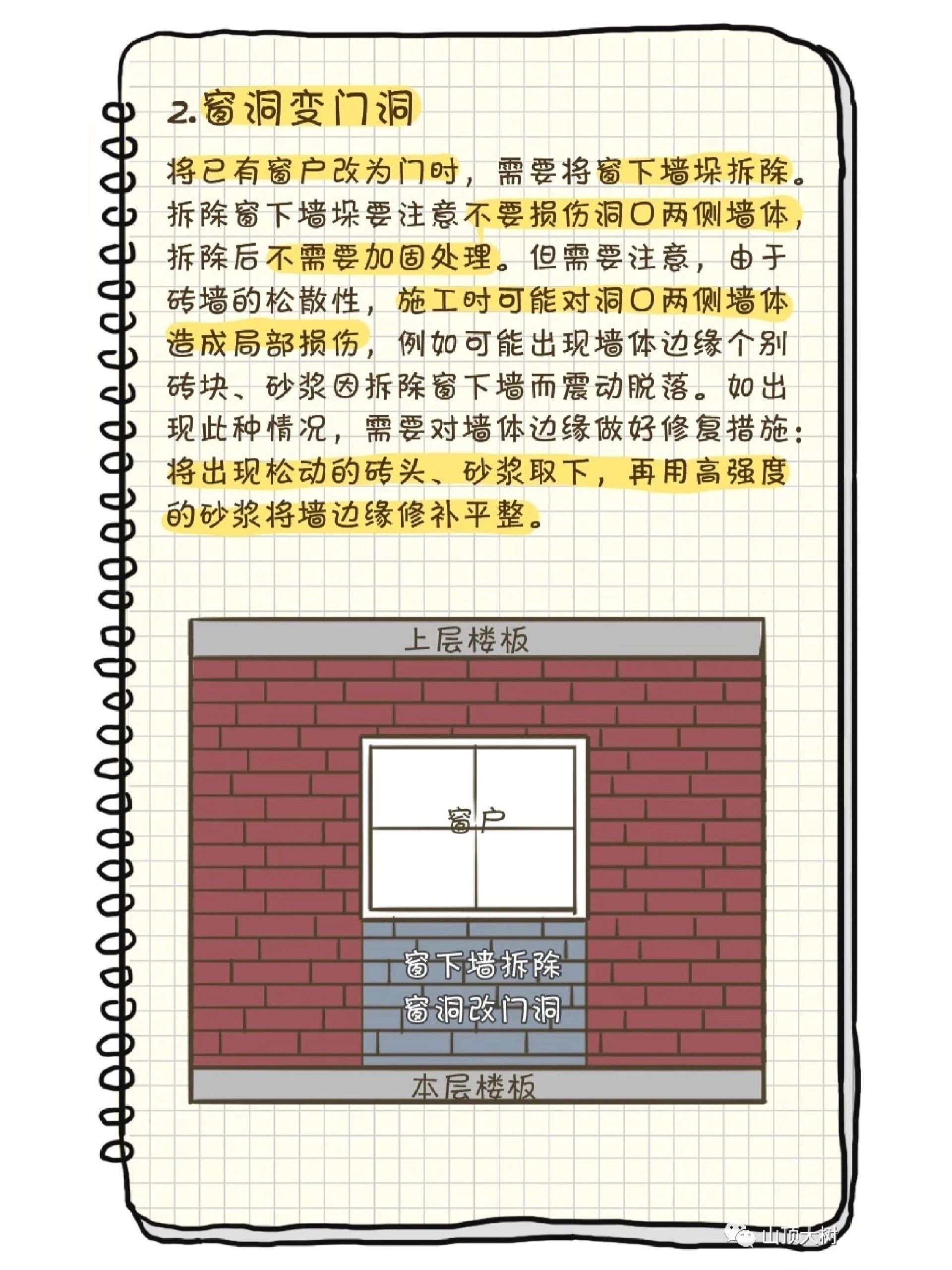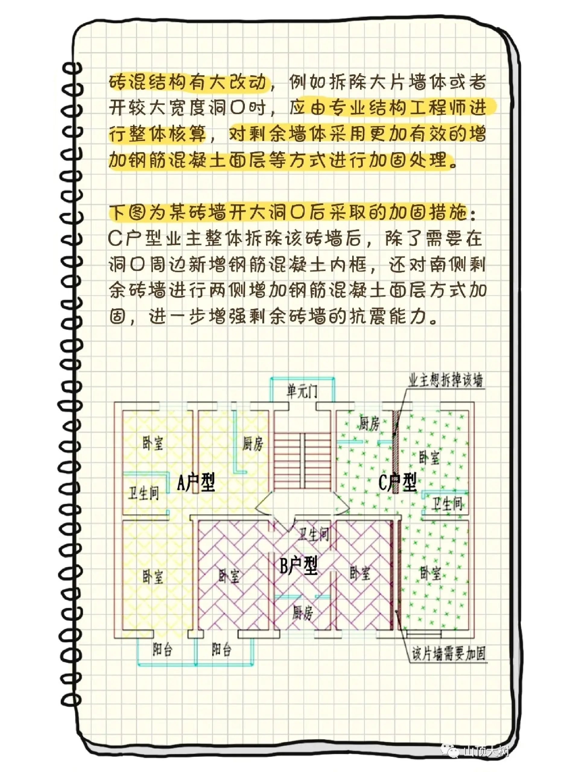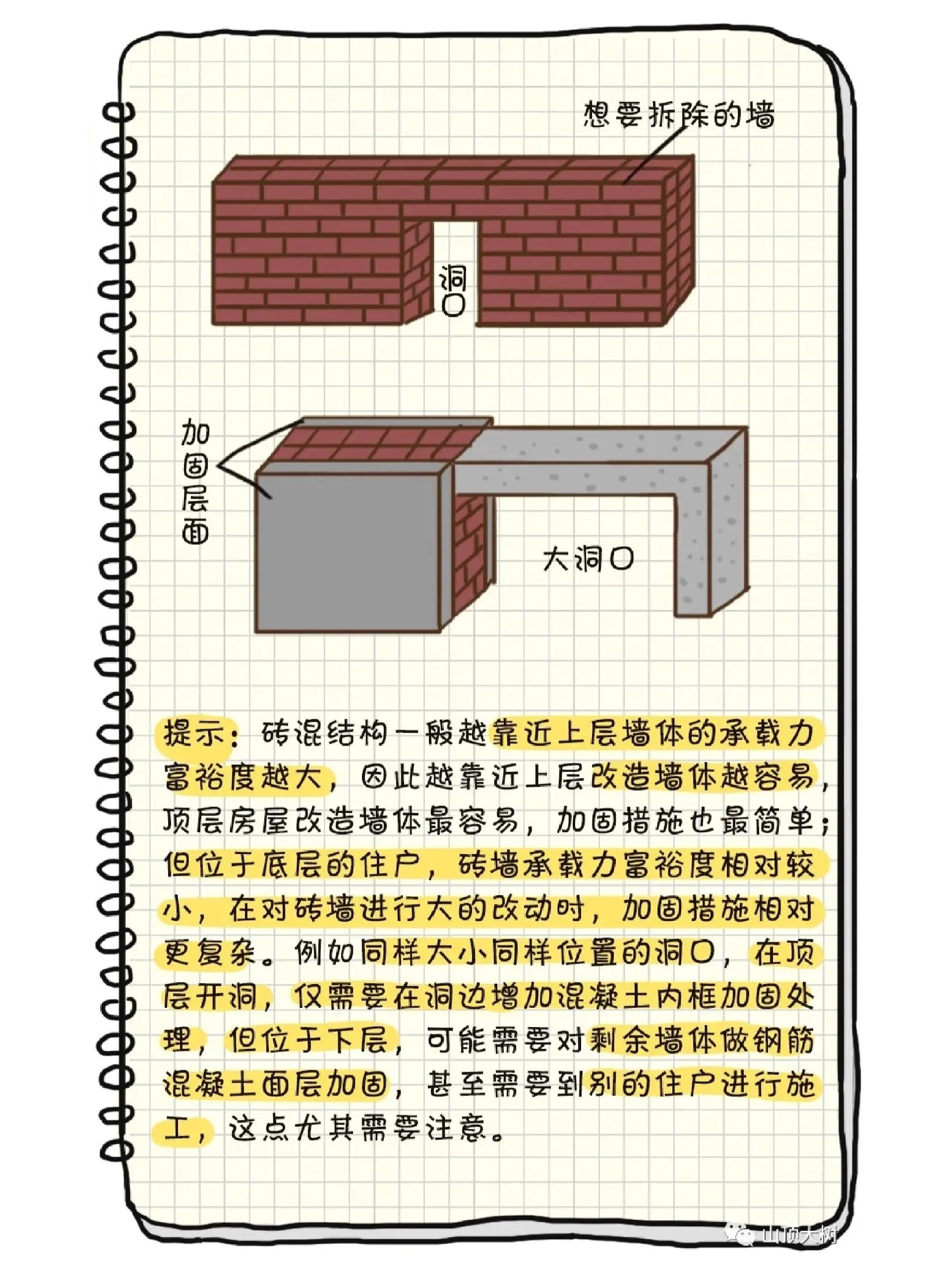 砖混房屋承重墙开门洞的处理方法以上就介绍这么多了,不过也要提醒大家,砖混结构墙体改造等施工的时候要特别注意,因为很多时候墙体都可能是承重作用。