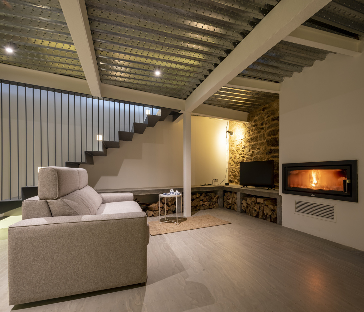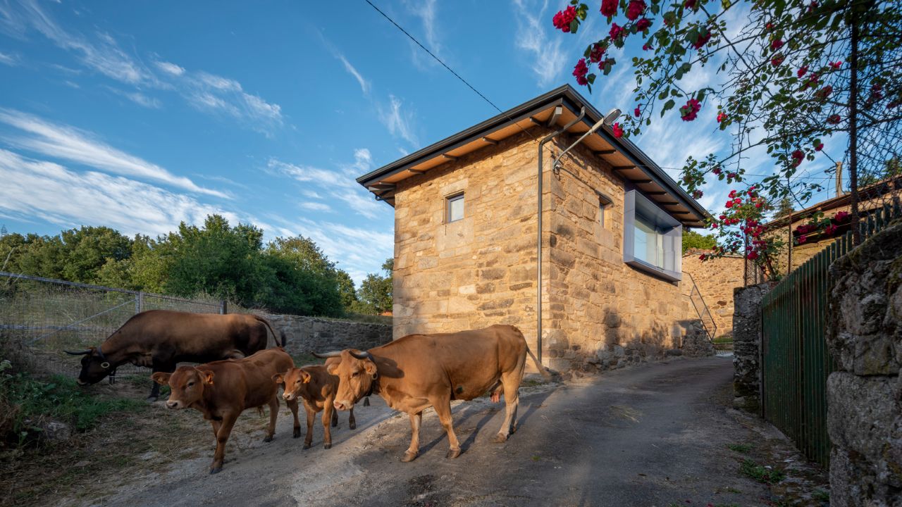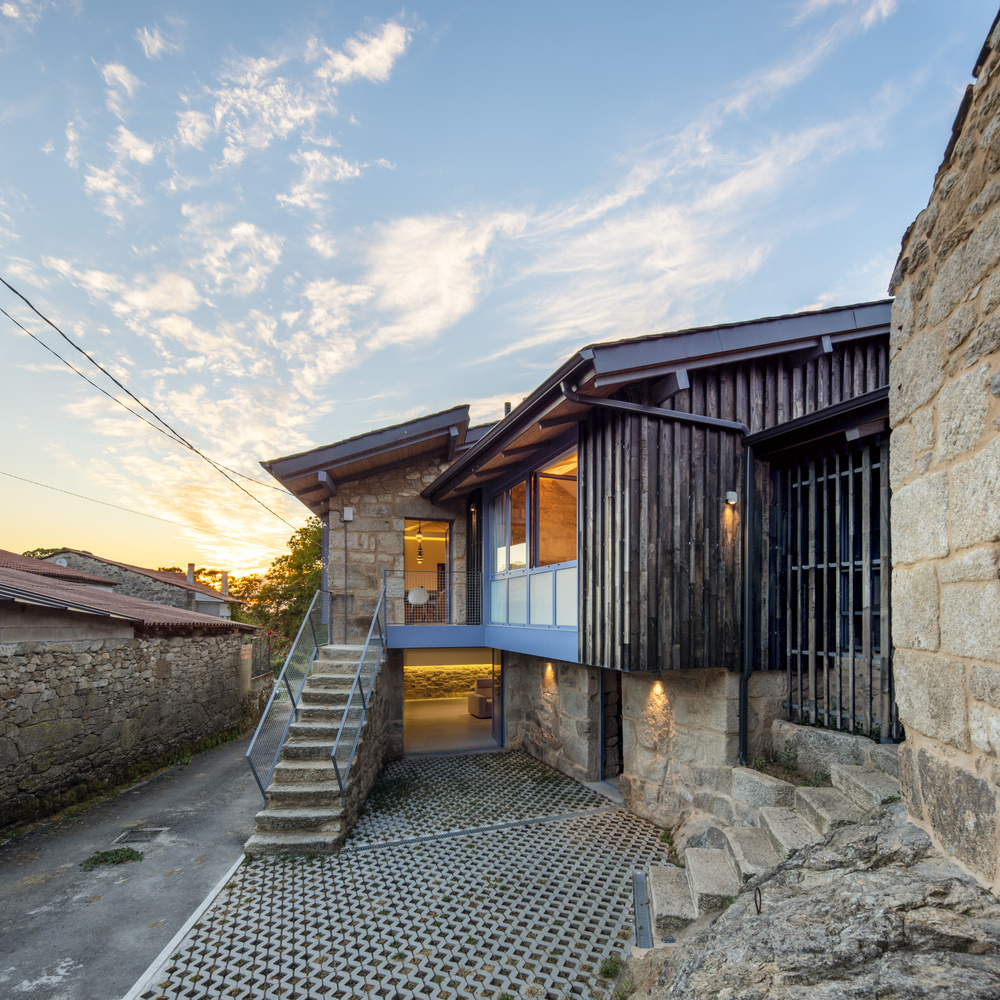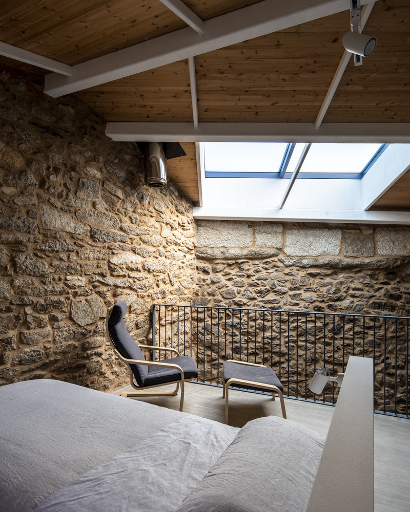 设计师修复具有当地特色的石头老墙, 拆除不协调的水泥墙体 嵌入一个木盒子,并把两栋老房连接起来 立面看上去更加协调整体 用钢架加固房子结构,屋顶也用当地的石板重新铺装 室内局部安装石膏板作为新墙面, 裸露部分老石墙,形成独特的装饰 这样融入当地乡村环境的改造你觉得怎么样?