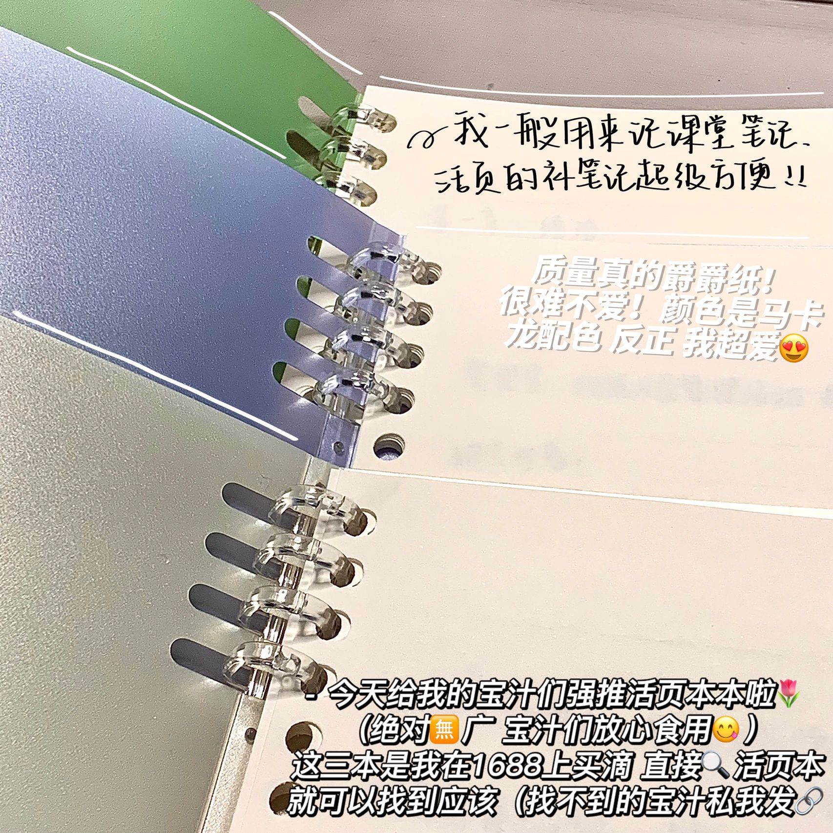 今天给我的宝汁们强推活页本本啦 (放在上面啦 宝汁们放心食用) 这三本是我在1688上买滴 直接活页本 就可以找到应该 质量真的爵爵纸!很难不爱! 颜色是马卡龙配色 反正 我超爱