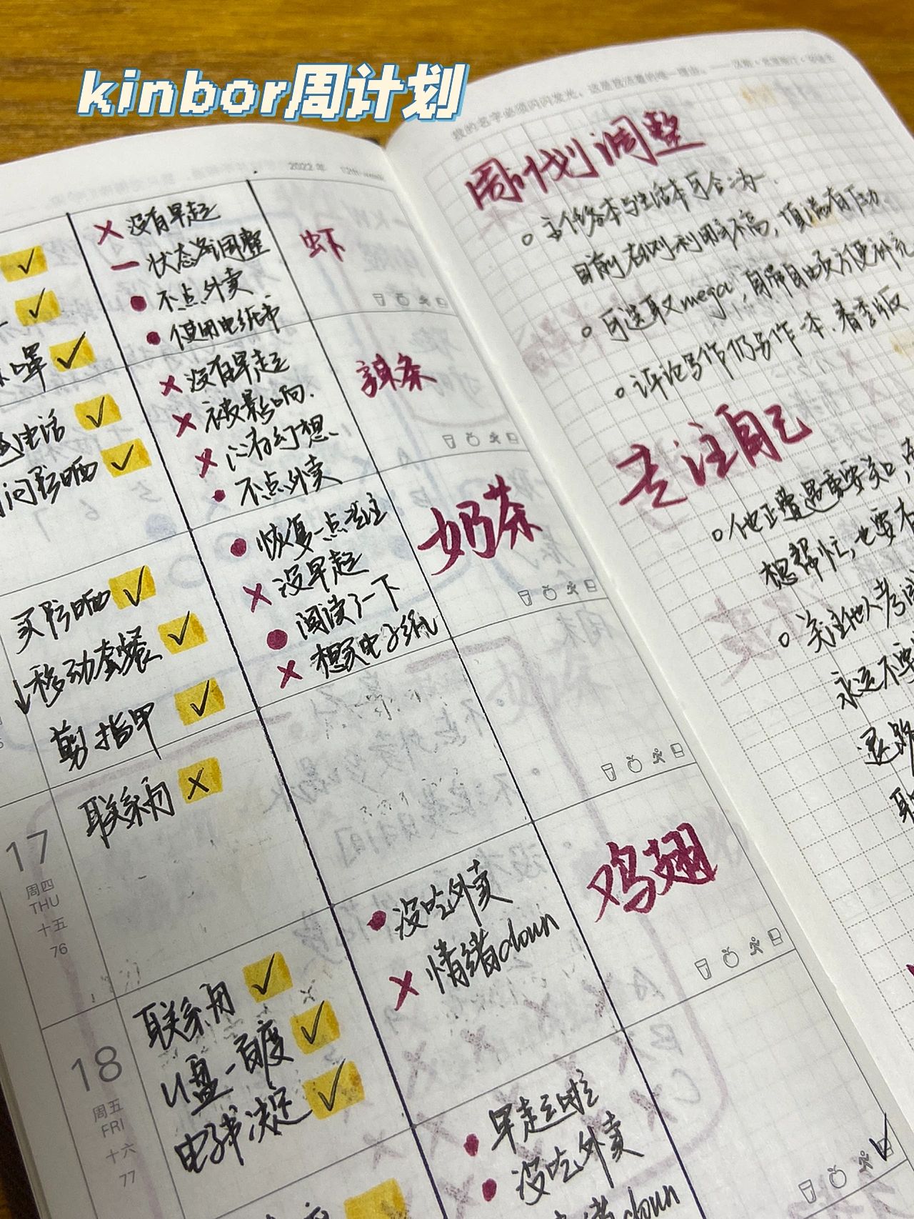 奶黄色封皮很好看,页面设计合理,一页两日,不会有太大负担。我这本是A5尺寸,纸张厚实,整体略厚重,作为日程本不那么便携。