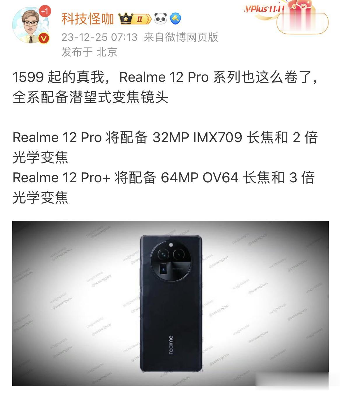 Realme 12 的大杯和超大杯居然都要配备潜望式变焦镜头了!!!