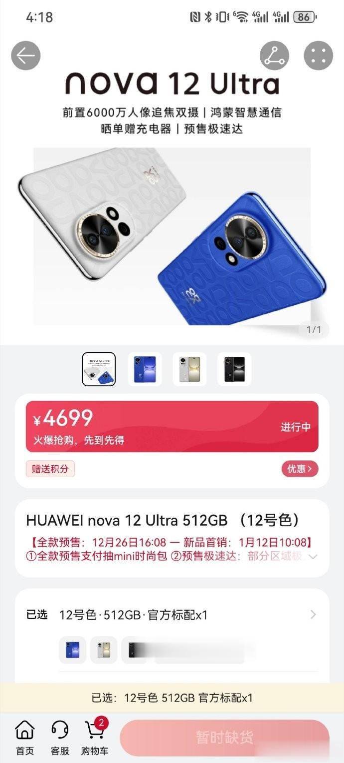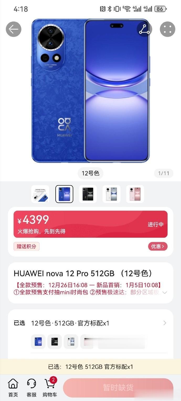 华为 nova12 系列,除了活力版512G没有秒售罄外,其他版本都是瞬间被抢空。。。