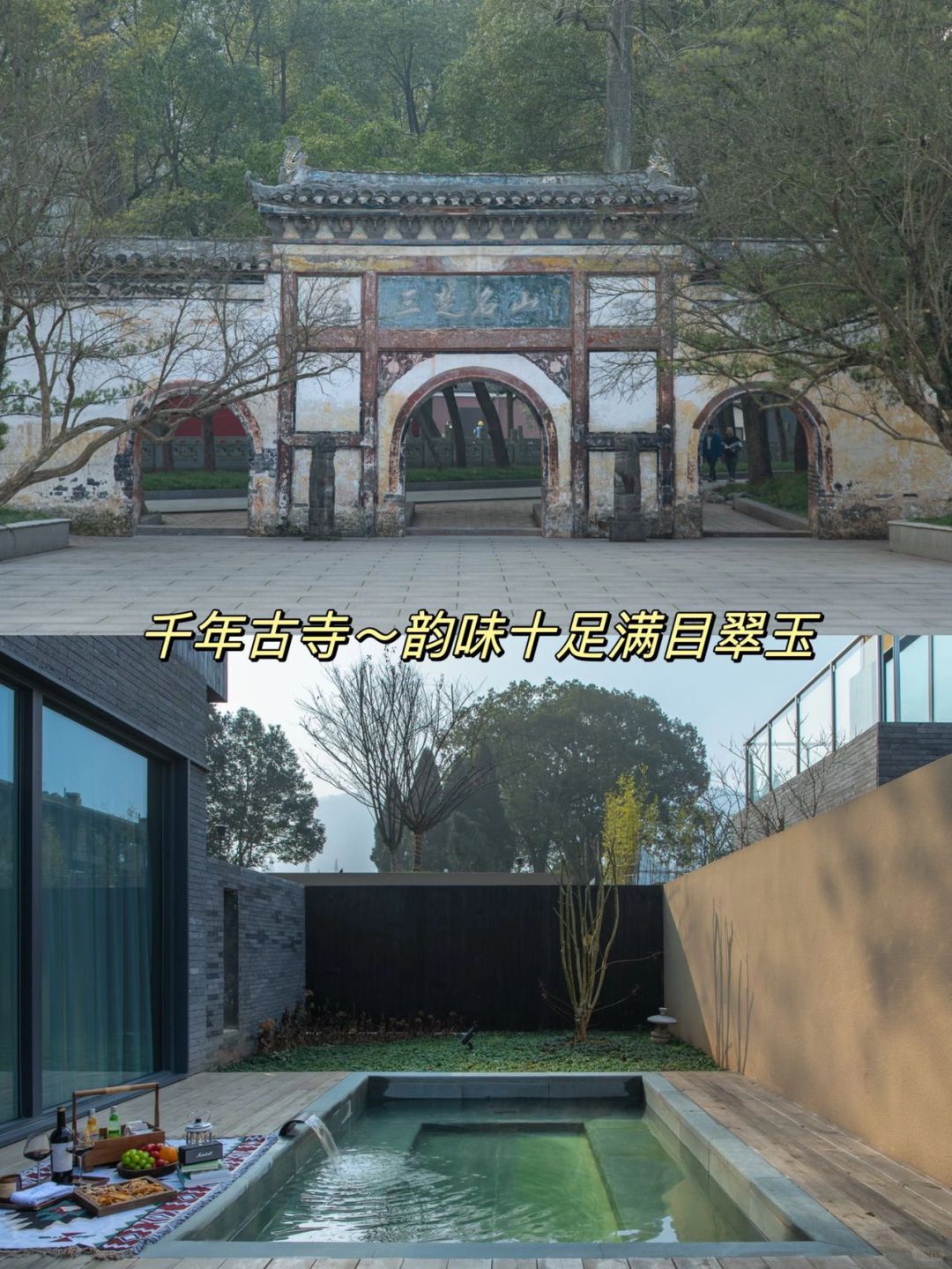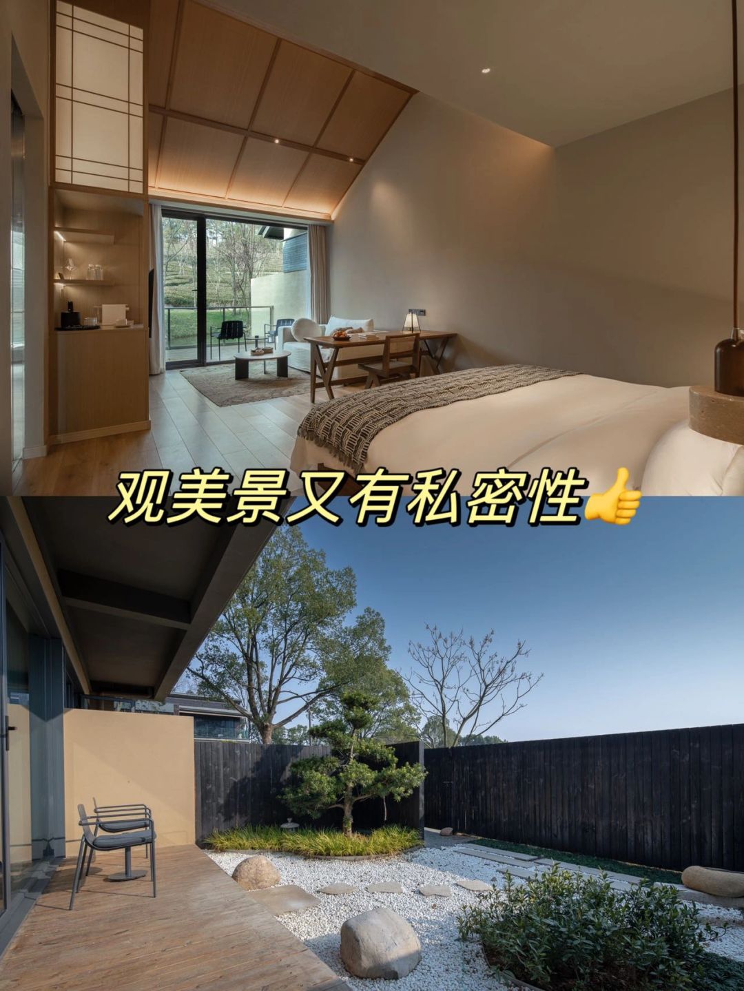 ⛰️我们入住的是山居大床房,房间面积特别大,设计很古风,有私享的茶台和庭院,每天都会提供水果和零食