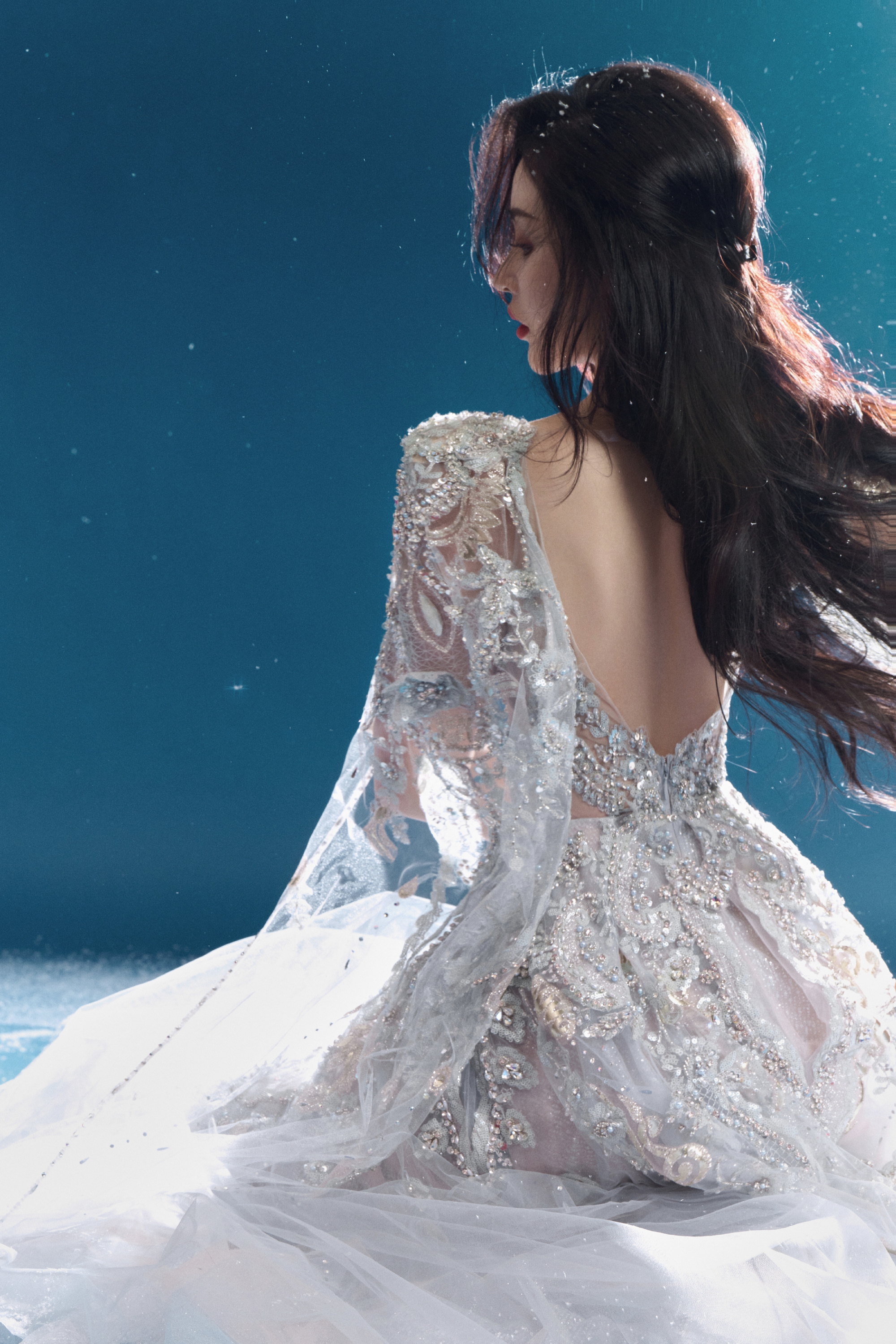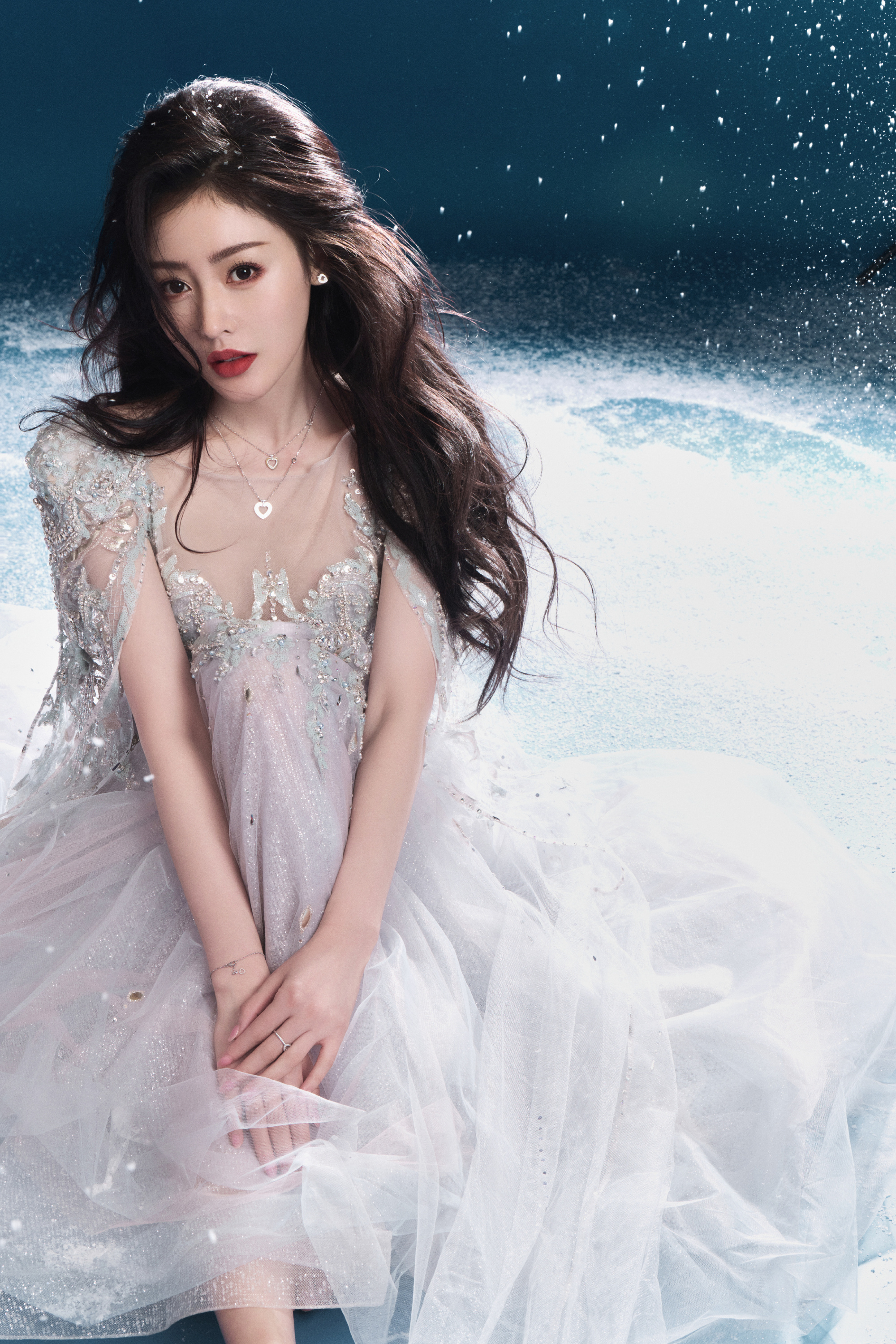 张天爱白色蕾丝纱裙,浪漫迷人的格调