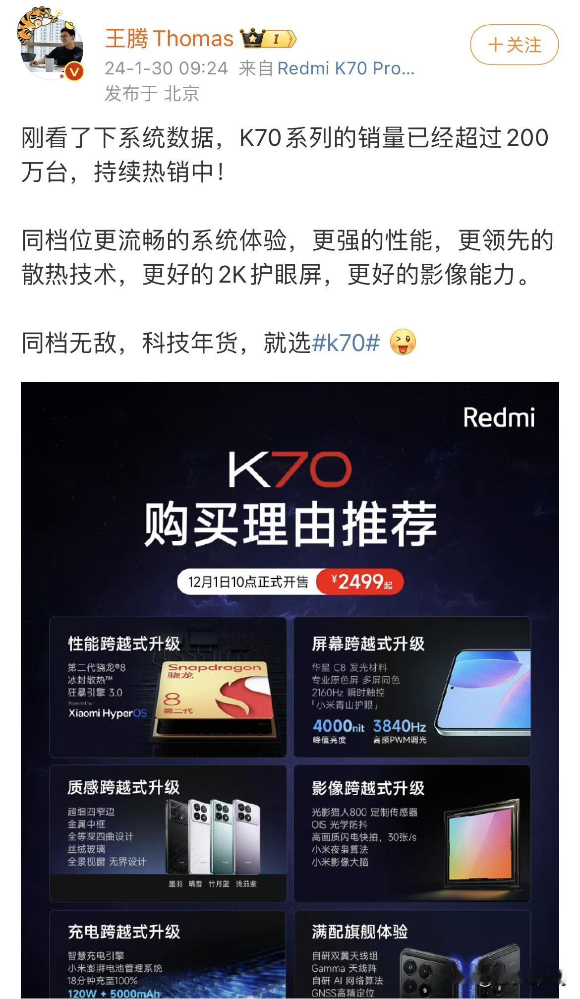 虽然知道K70销量不错,但没想到居然卖的这么好!
