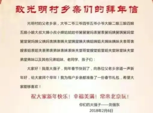 刘强东又火了一把!这次他给老家宿迁光明村的村民们送上了超千件羽绒服和超市礼盒,让大家过个暖和又丰盛的春节。东哥出手,果然不同凡响!光明村瞬间变成欢乐派对,老少皆宜,暖意浓浓。这波操作,东哥你真是太有爱了!