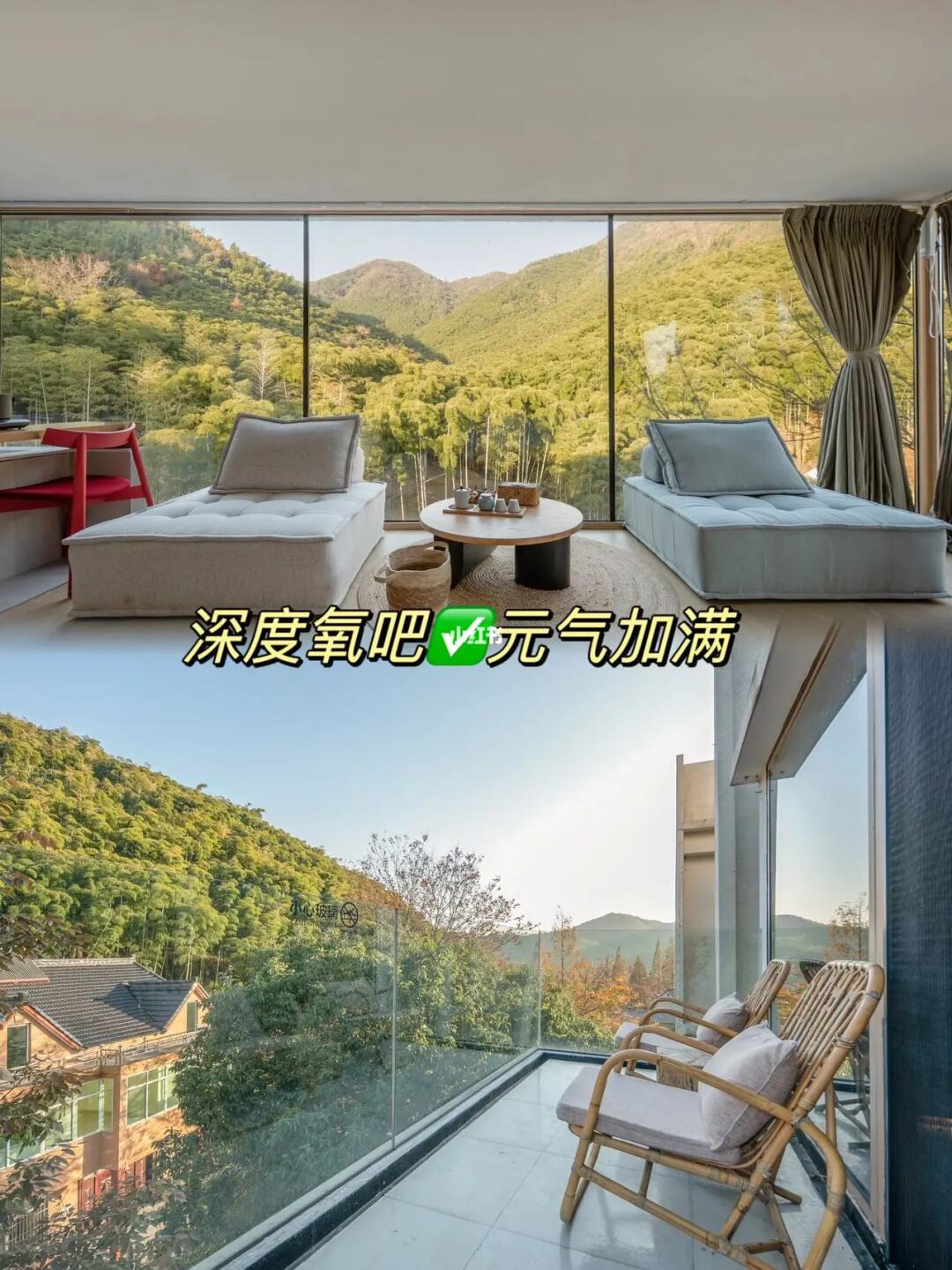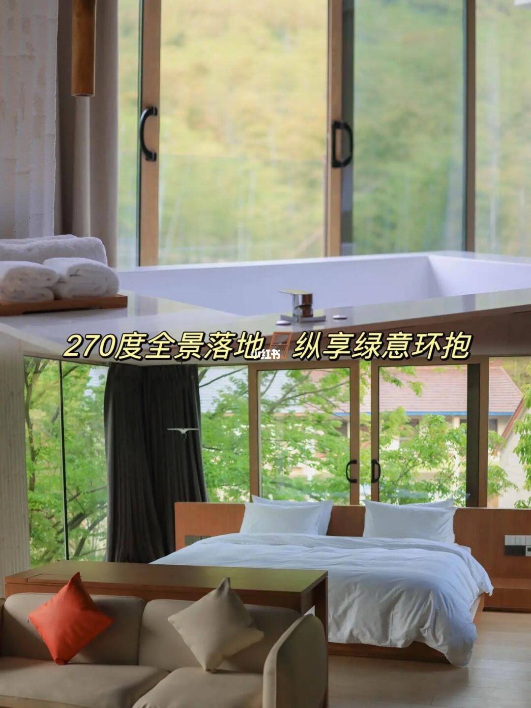 观竹景观房拥有独立的庭院,清晨梦醒来开落地景观窗,被一大片竹林环抱着,太舒服了