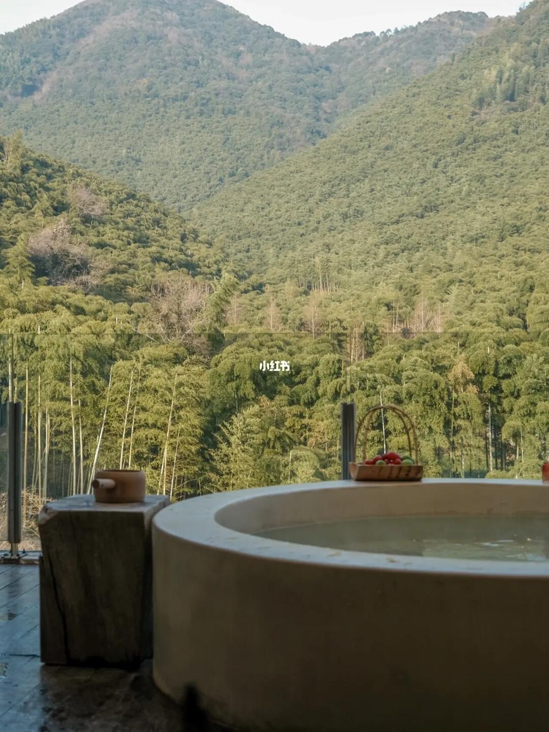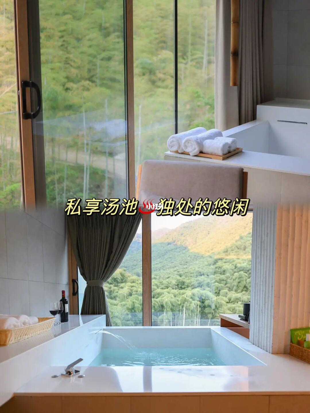 房间内还有超大的私汤泡池,设备齐全+地暖,一边泡汤放空,一边徜徉在莫干山秀丽景致之中好舒胡~