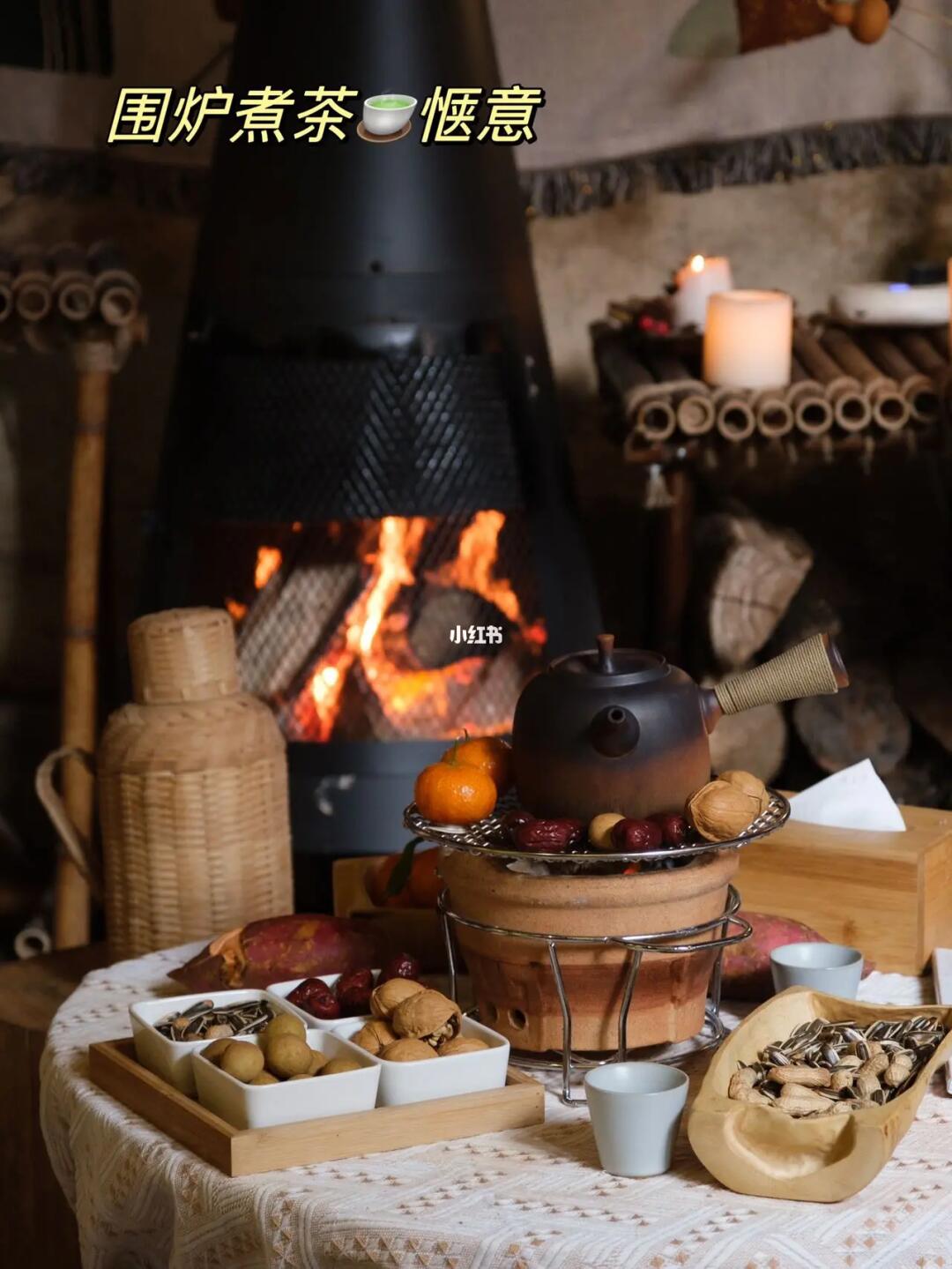 ✔️围炉煮茶:庭院里可以围炉煮茶,撸猫逗狗