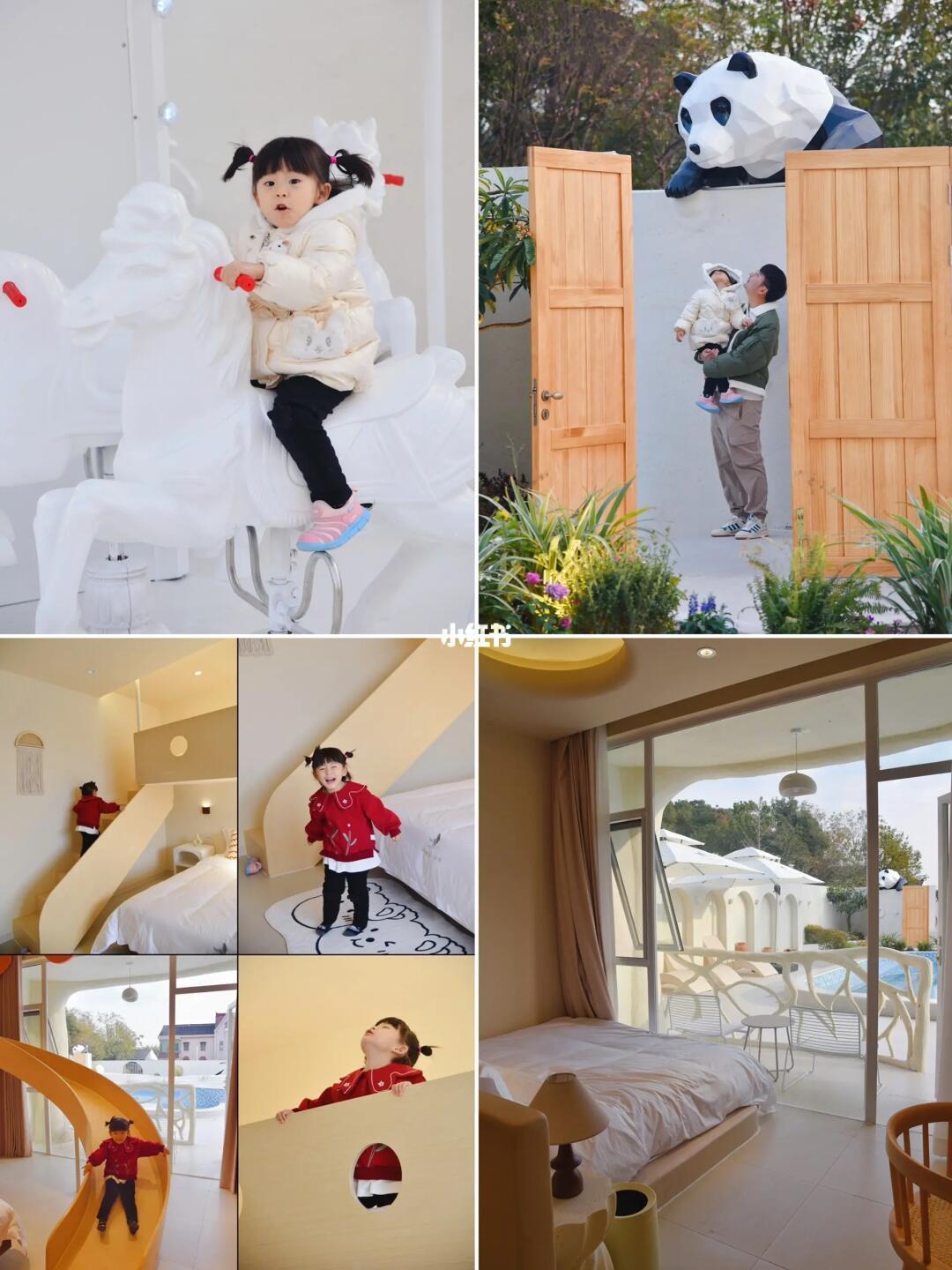 民宿就在迪士尼附近不远,门口趴着的大熊猫、院子里的旋转木马、房间里的滑滑梯,带娃去迪士尼可以住这里