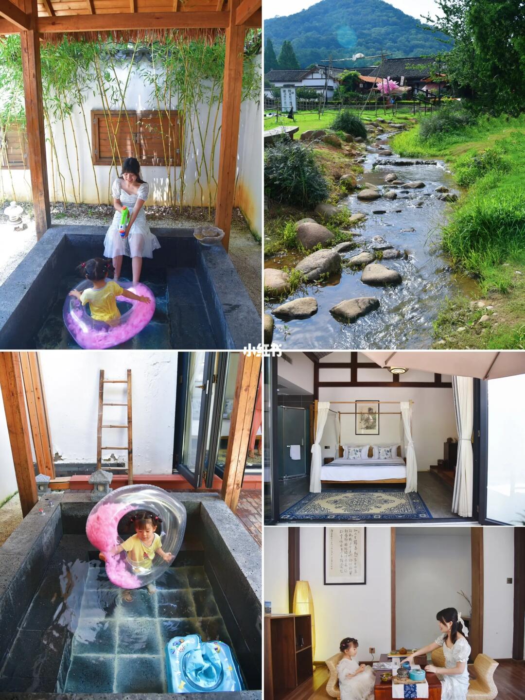 民宿坐落在南京不老村里面,喜欢泡汤的可以订她家的庭院私汤房,带娃来这里可以玩探险乐园、市集