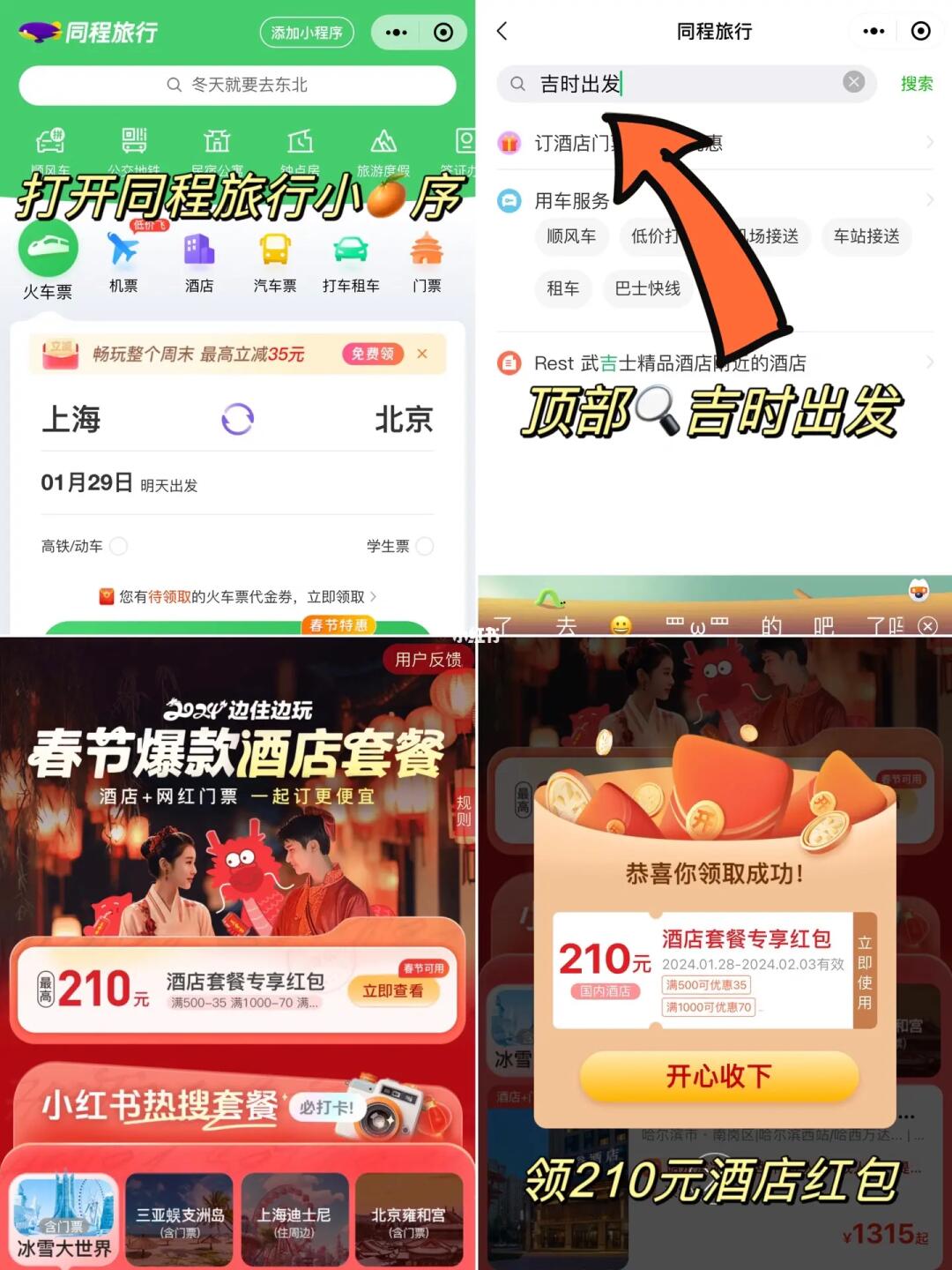 春节计划旅行,提前订住宿就上同程酒店,可以get高达210元🧧,还有热门旅游目的地酒店门票套餐更实惠~
