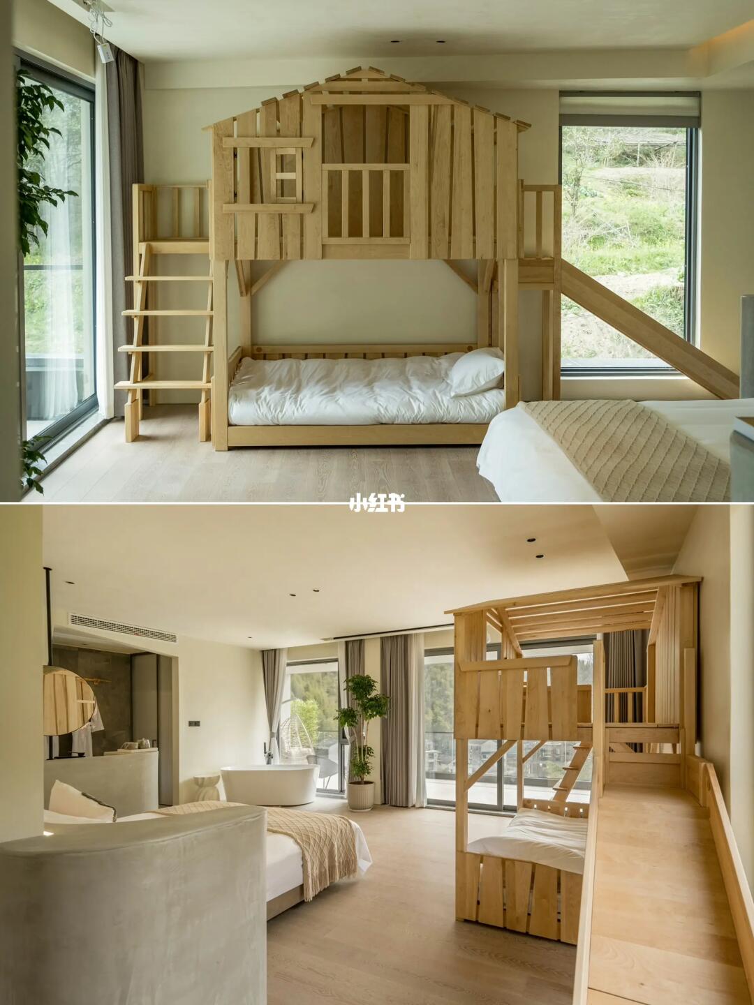 而且非常适合亲子住宿,还有滑梯的房间,可惜这次没有住到。早上醒来时刚好下过雨,山上都浮着云,一片云雾朦胧的,听着林间鸟叫,太舒服了!
