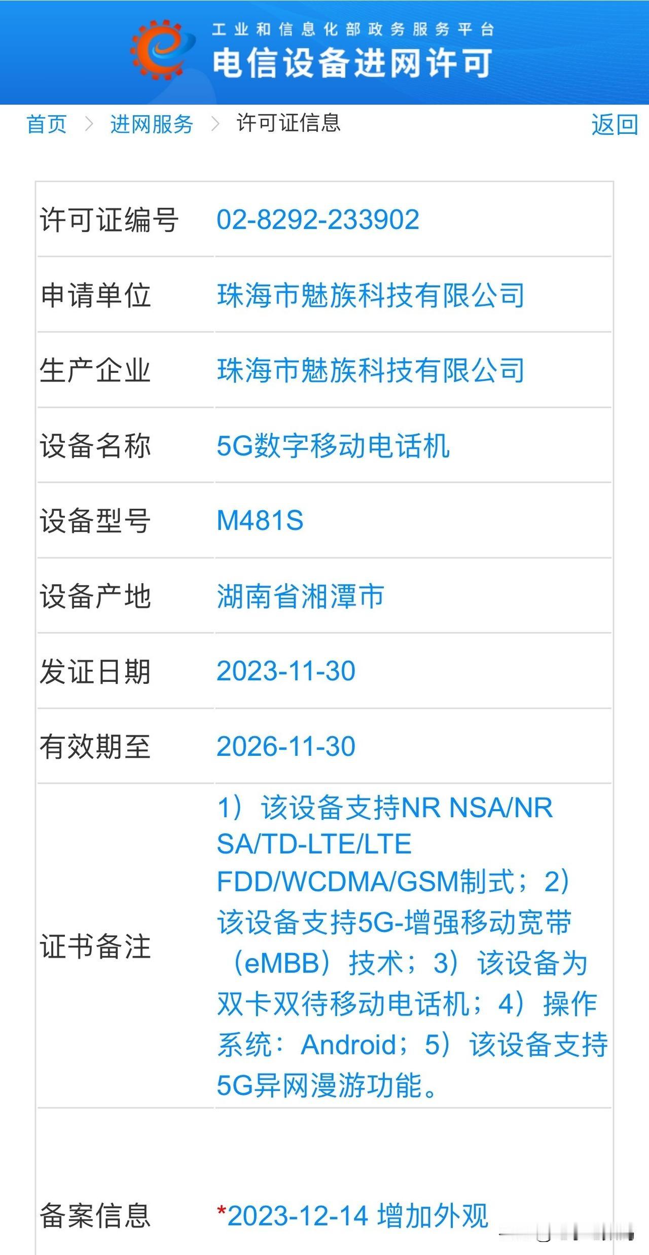 同样是珠海市魅族科技有限公司生产,外观也和魅族 21 PRO 基本一致,只不过是把LOGO给改了下。