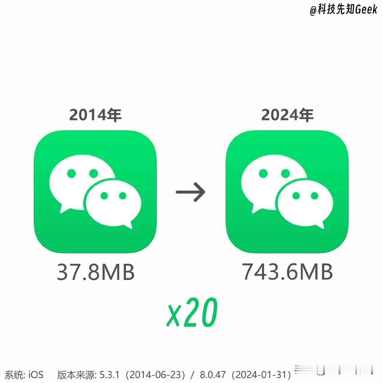 聊天软件也增大的夸张,微信变大了20倍,QQ变大了15倍;