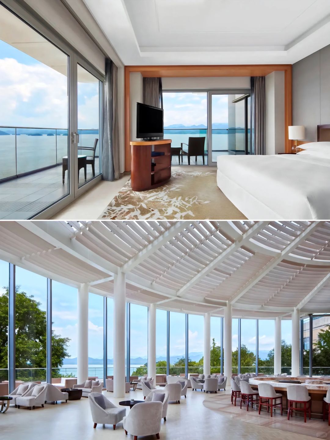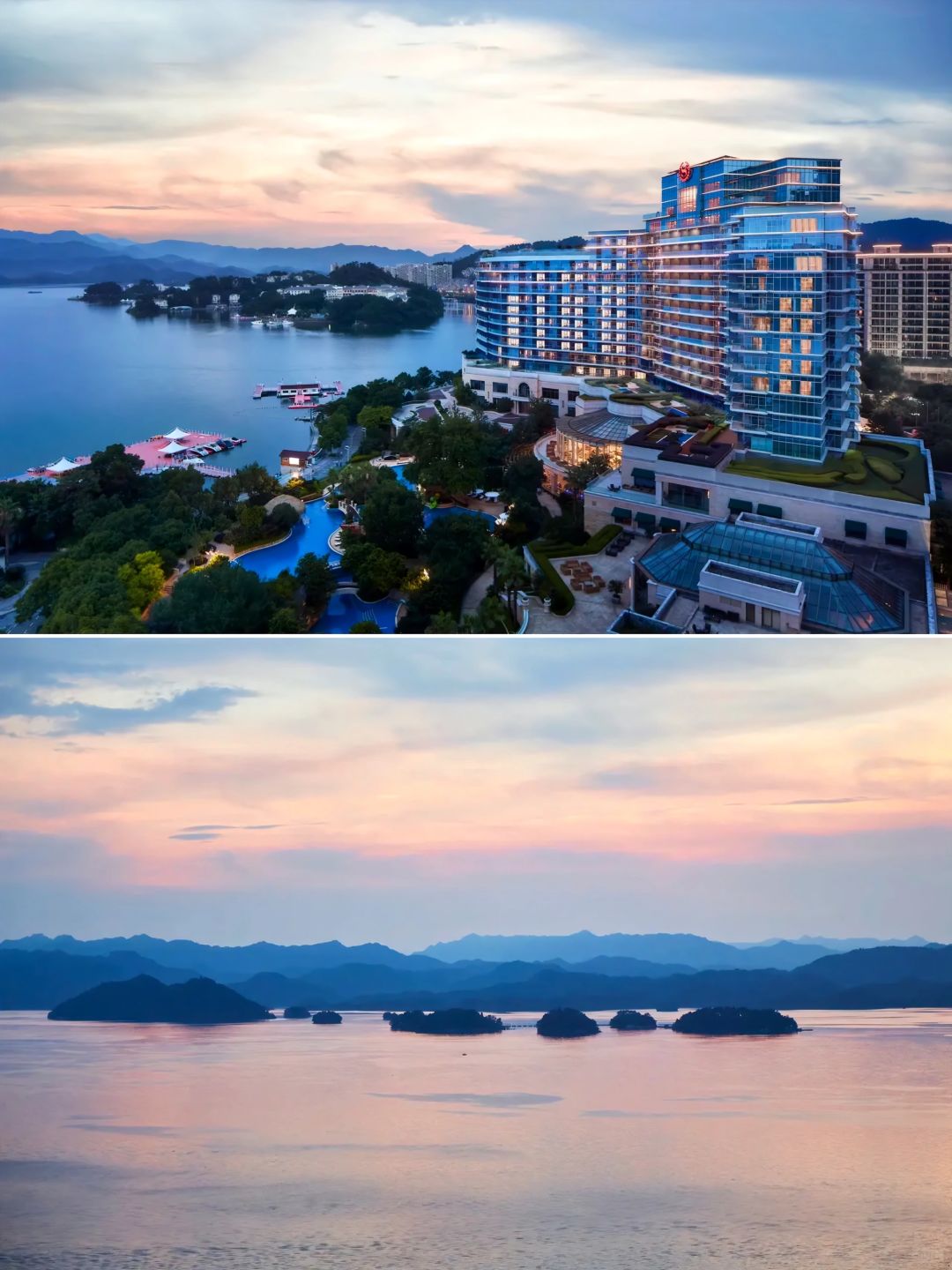 酒店就是千岛湖观景C位,视野简直不能再好了,一整个湖景心旷神怡!日落美的简直不像话!酒店后面有租自行车的,有水上游乐项目,很适合遛娃