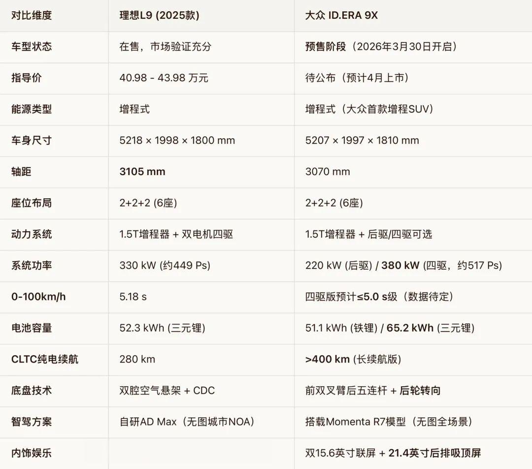 当然,这是大众作为后来者(也是细分市场新挑战者)必须拿出的诚意,也是大众晚发力增程新能源赛道不得不付出的“代价”。但从技术创新和产品成熟度看,大众9X同样具有一次解决前期增程旗舰SUV所有用户痛点的“后发优势”。