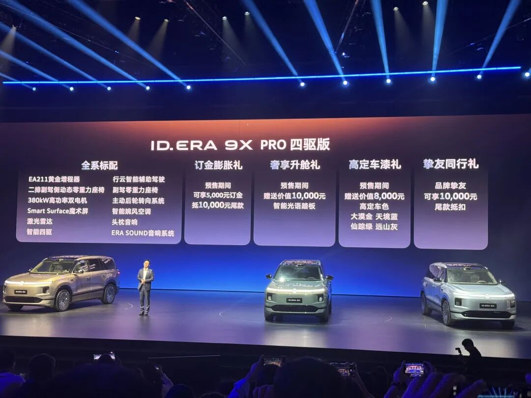 上汽大众基于中国市场需求、中国科技资源和大众全球标准打造的“德系满级旗舰SUV”——大众ID.ERA 9X(以下简称“大众9X”),日前(3月30日晚)在深圳正式开启预售。